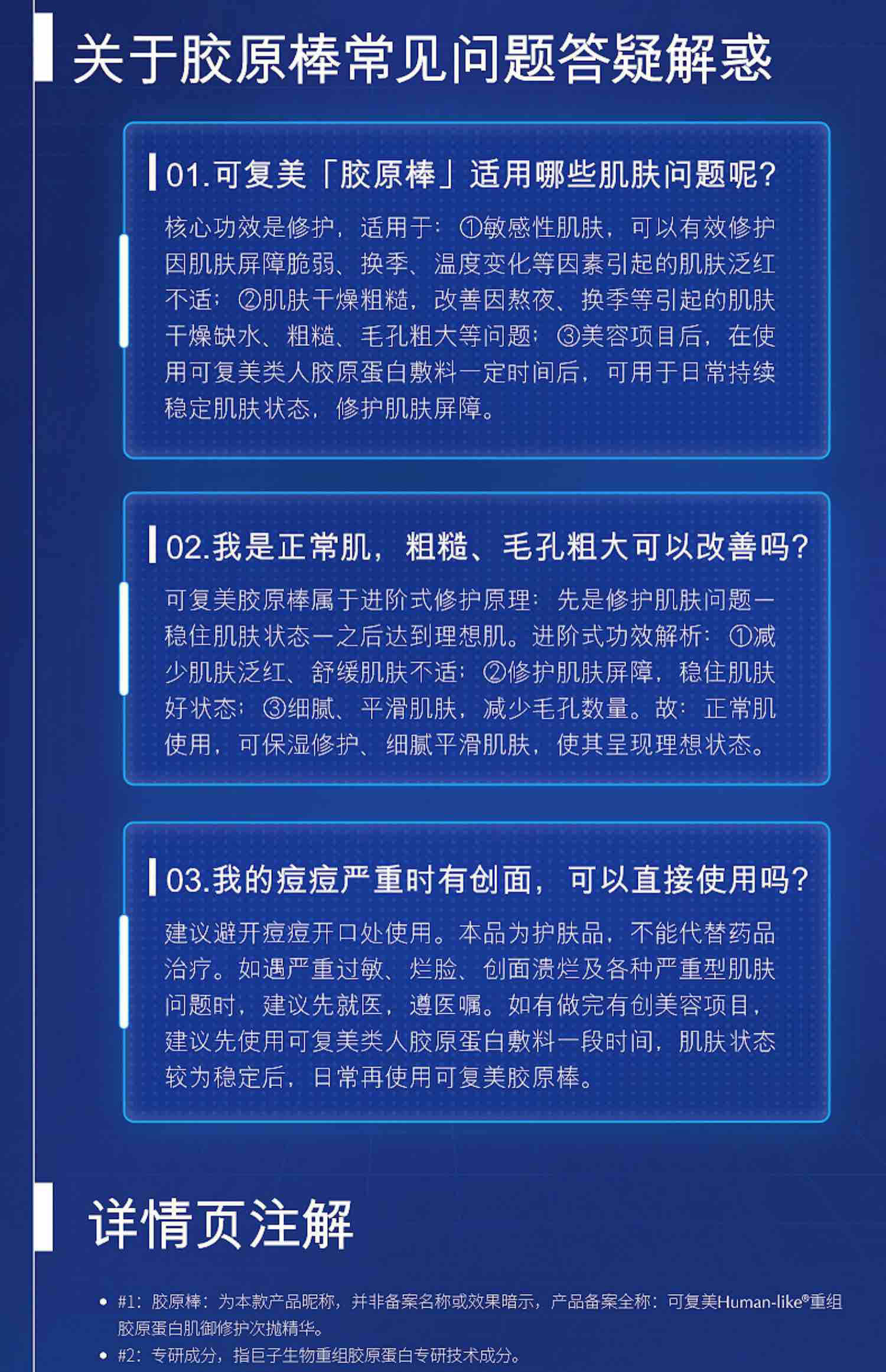 可复美 胶原棒 重组胶原蛋白玻尿酸次抛精华 5支/30支