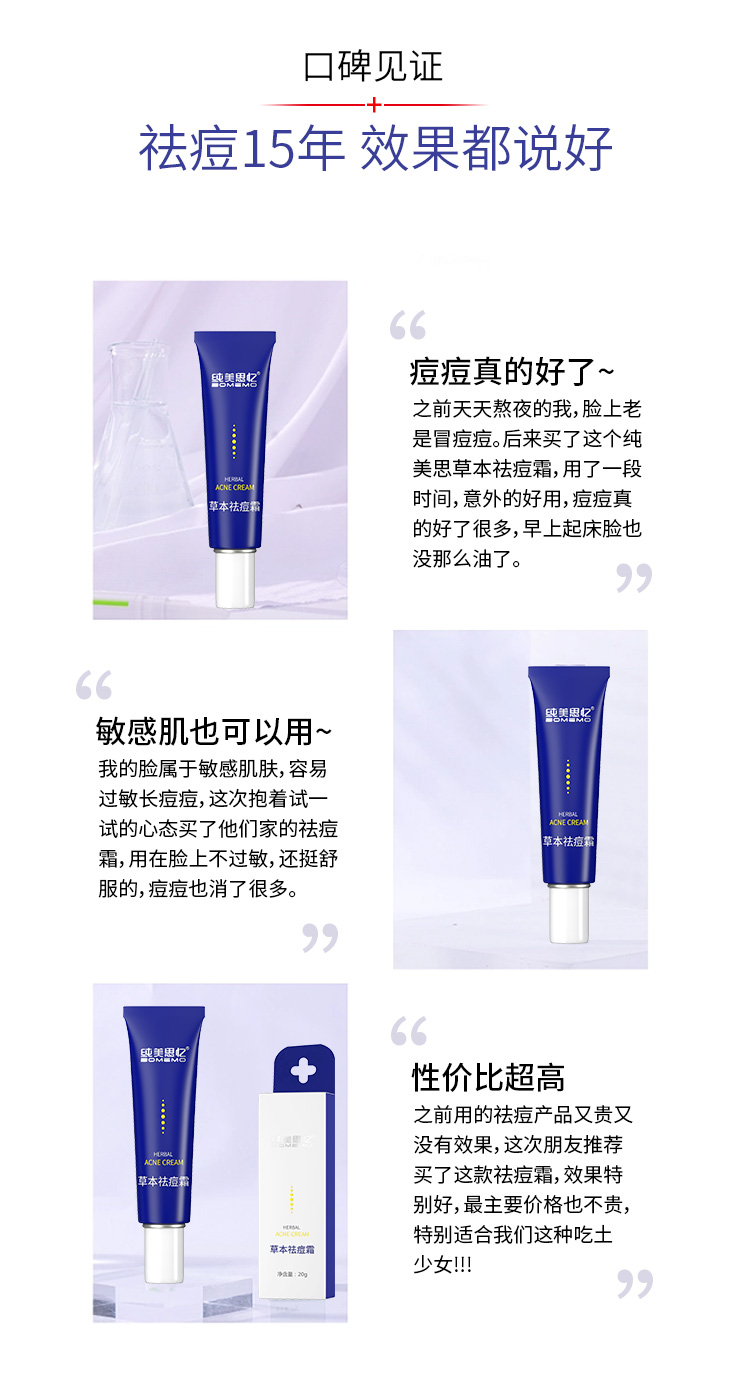 【年终大促】草本祛痘霜 20g(原:草本痘净霜 经过【祛痘功效检测】证实有祛痘的功效效果