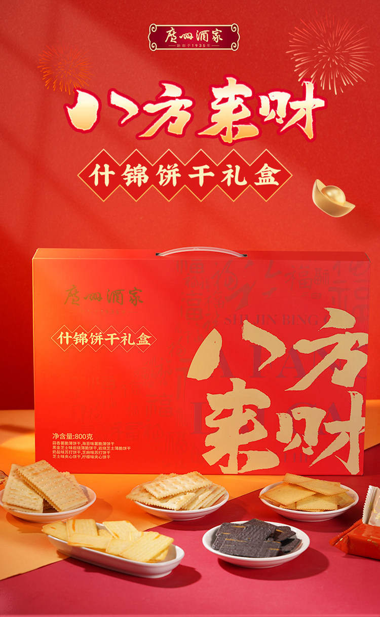 【金蛇献瑞】广州酒家 八方来财什锦饼干礼盒 800g【包邮直发】