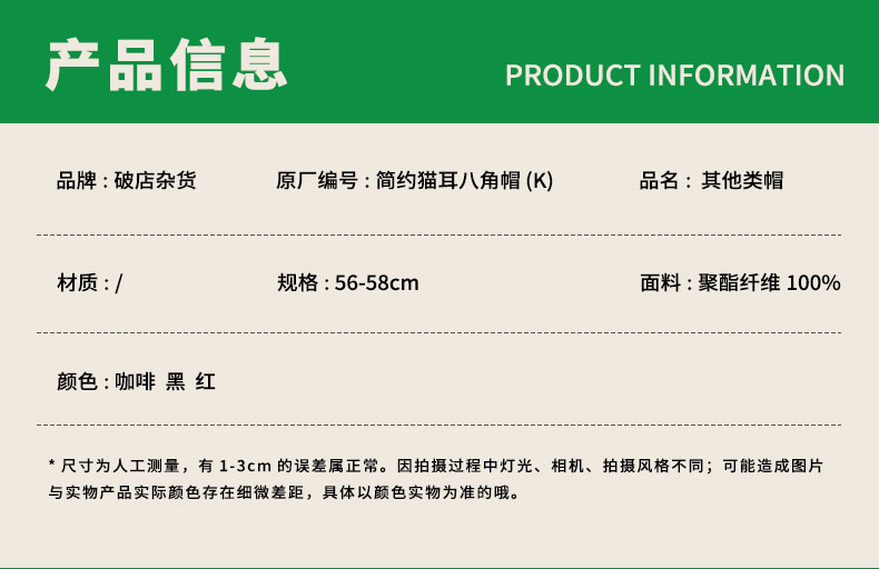 爆款简约猫耳八角帽其他类帽-纪念日百货门店同款166693169