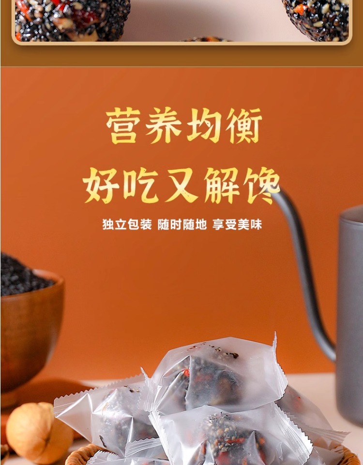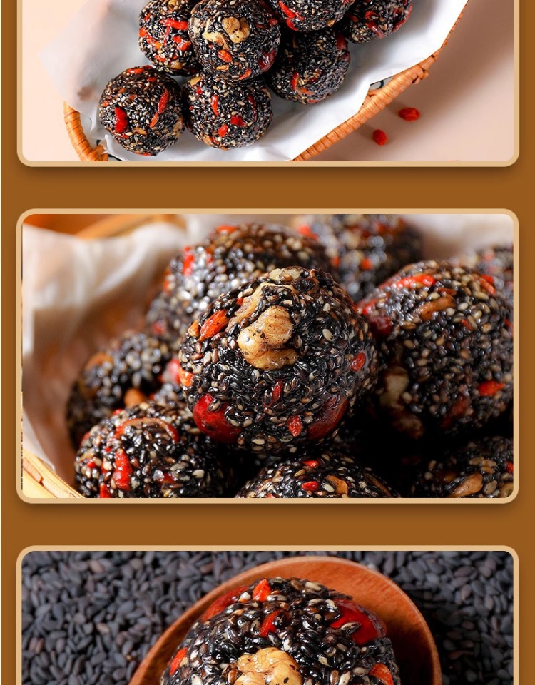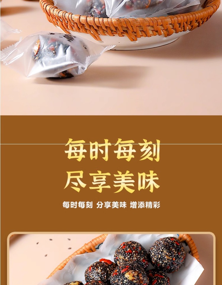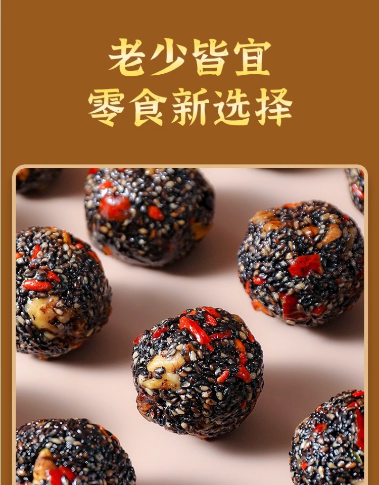 【传统手作! 五珍黑芝麻丸】甄选优质原料,红枣/黑芝麻/核桃仁/红枸杞/桑葚,大小均匀颗颗饱满,下午茶休闲零食小吃L