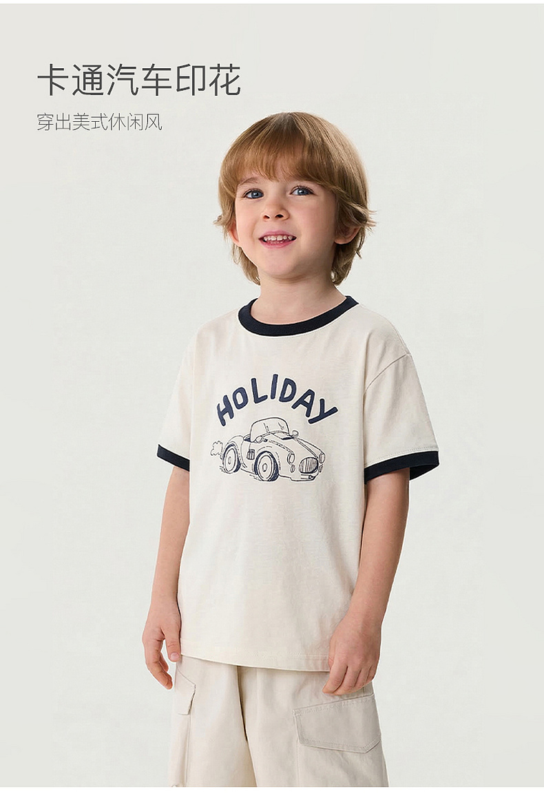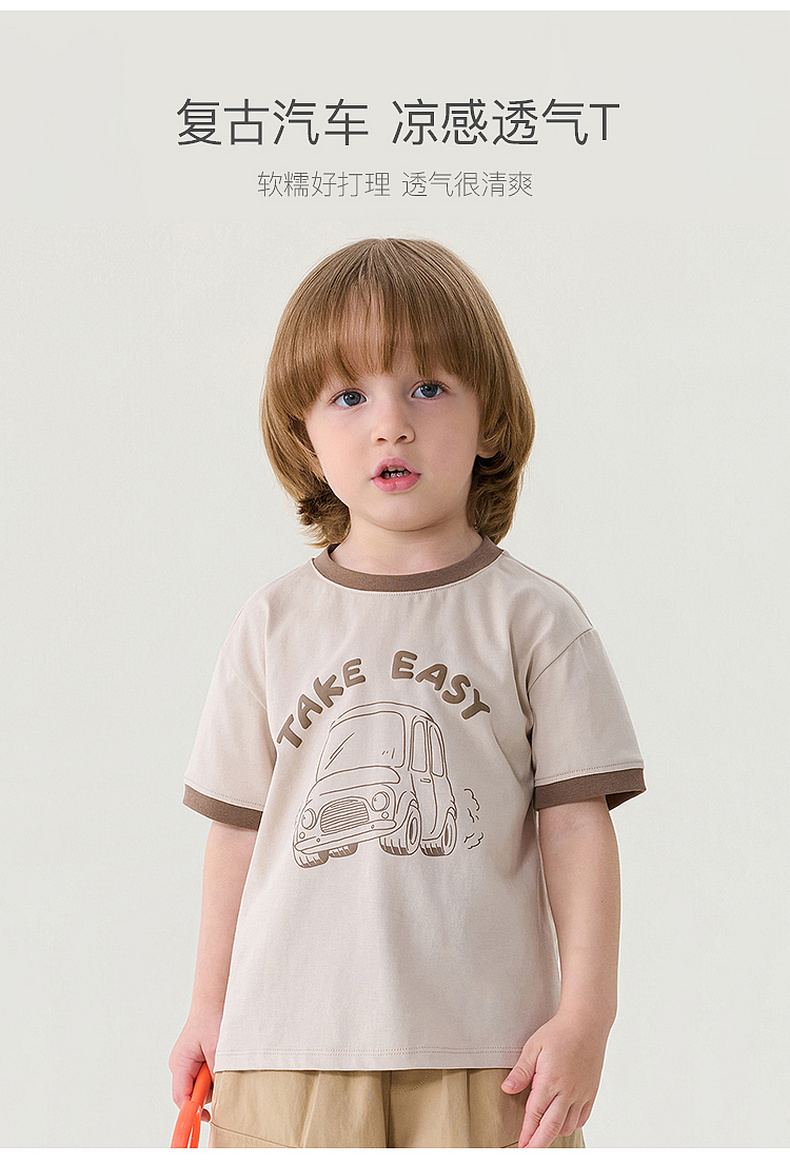 马克珍妮复古汽车男童透气凉感T2026年夏装新款560312