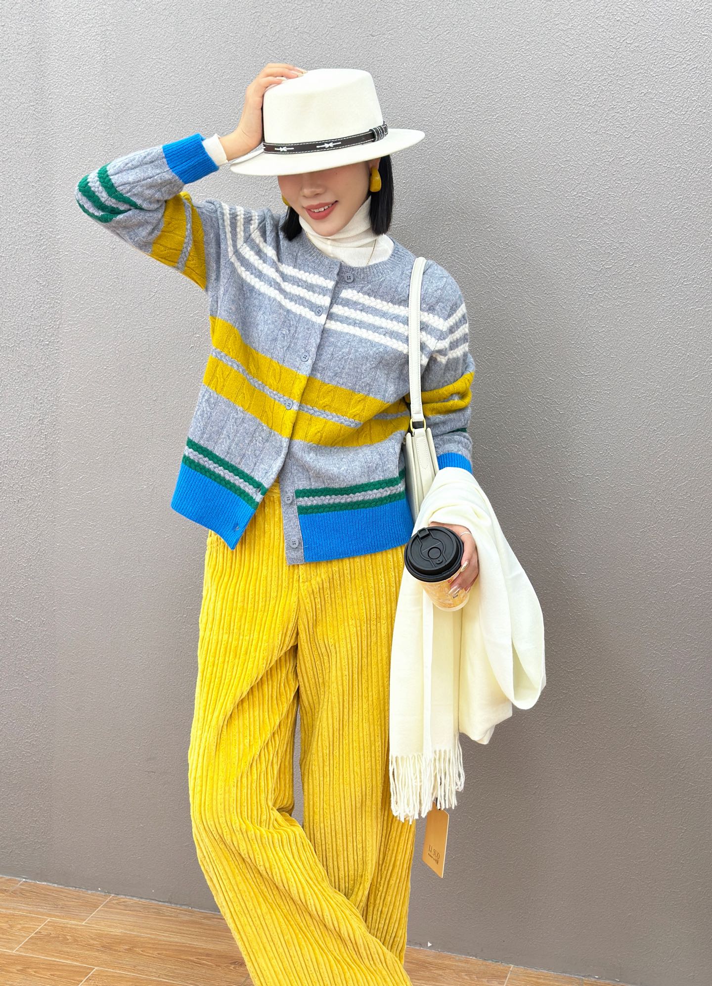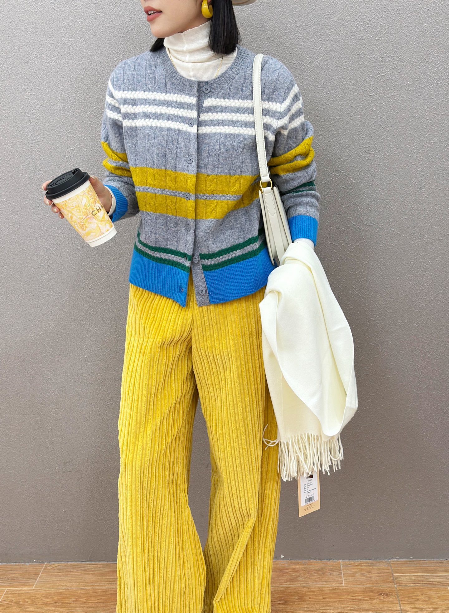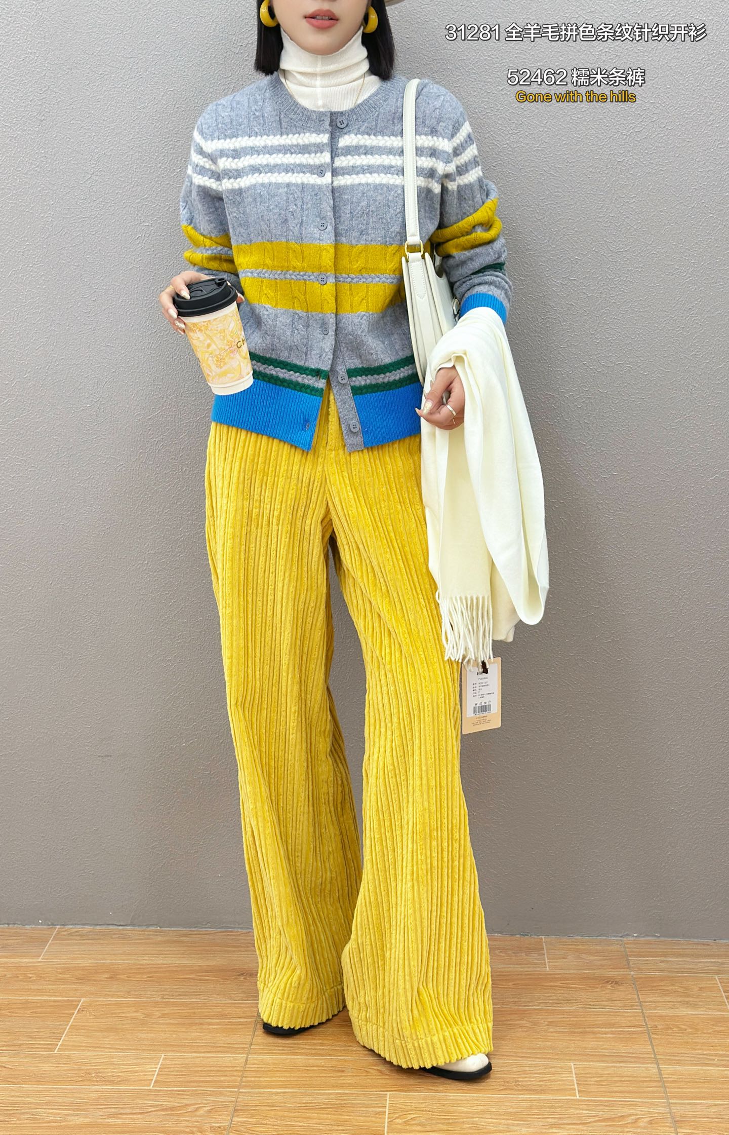 D5MZ31281#全羊毛拼色条纹针织开衫