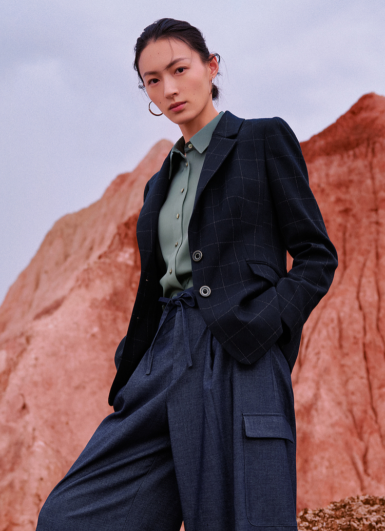 G2000【舒适弹性/商场新款】女装FW25商务通勤格纹西服56212233