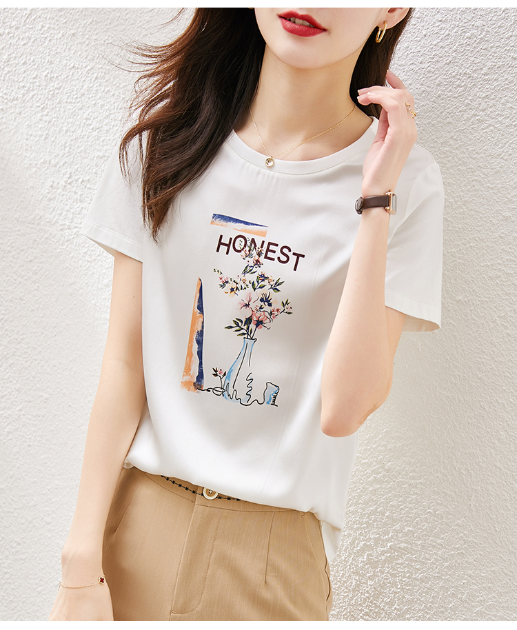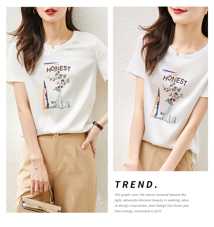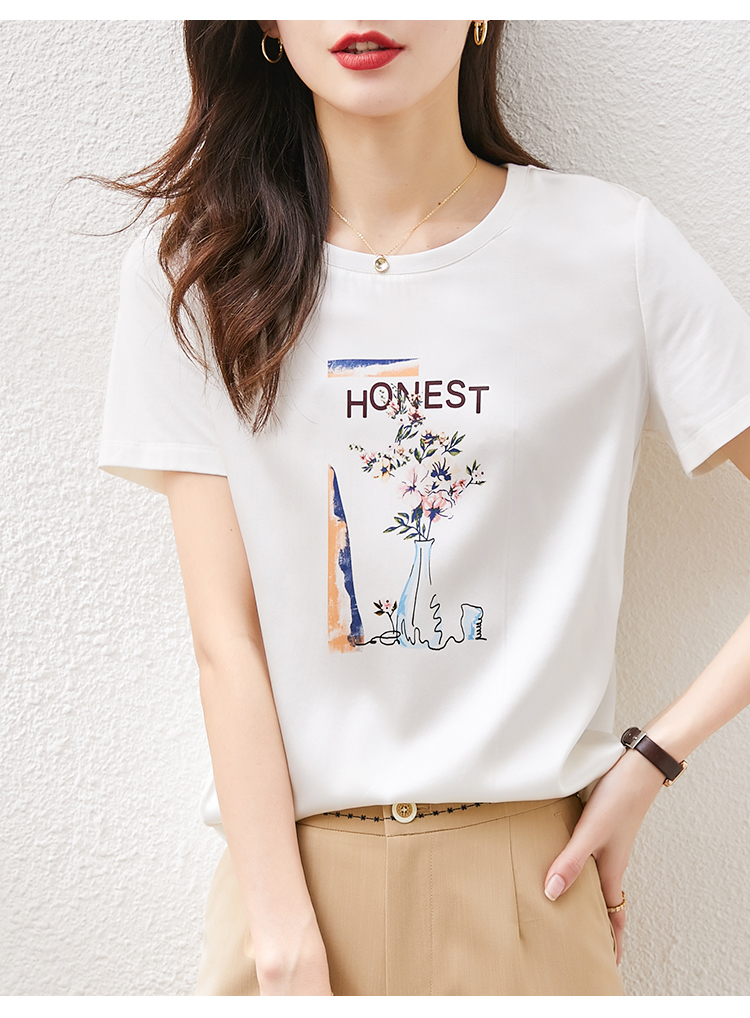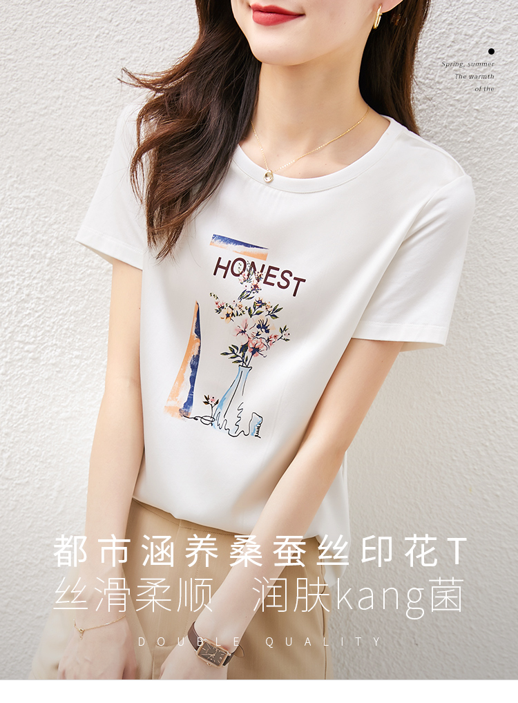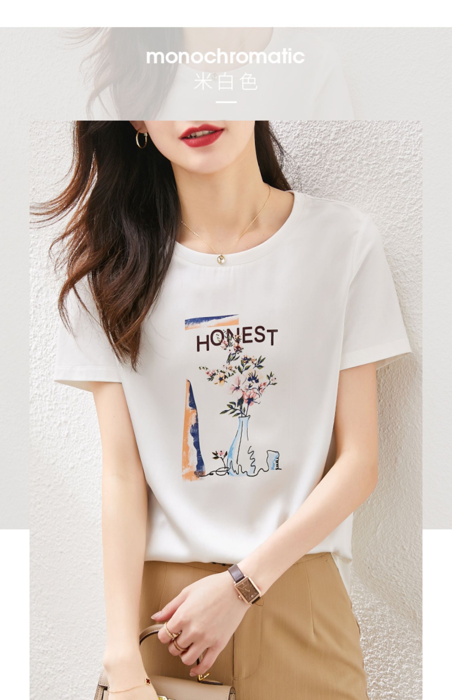 【专属特价】熙世界真丝印花t恤女短袖夏2025新款宽松显瘦百搭圆领桑蚕丝上衣