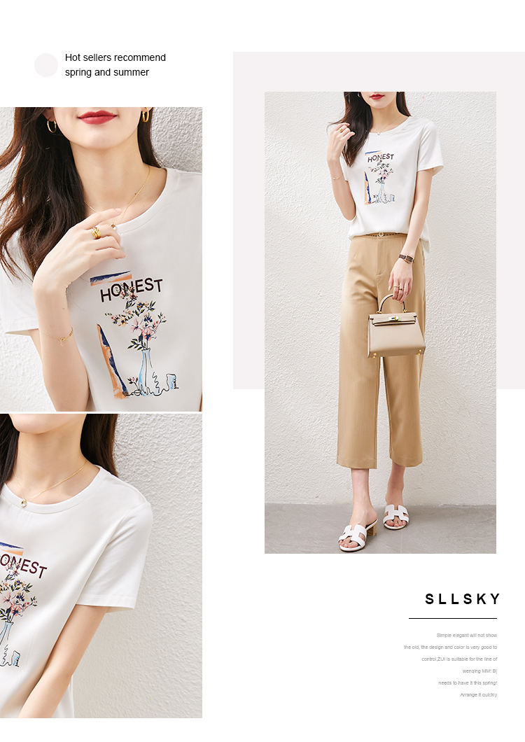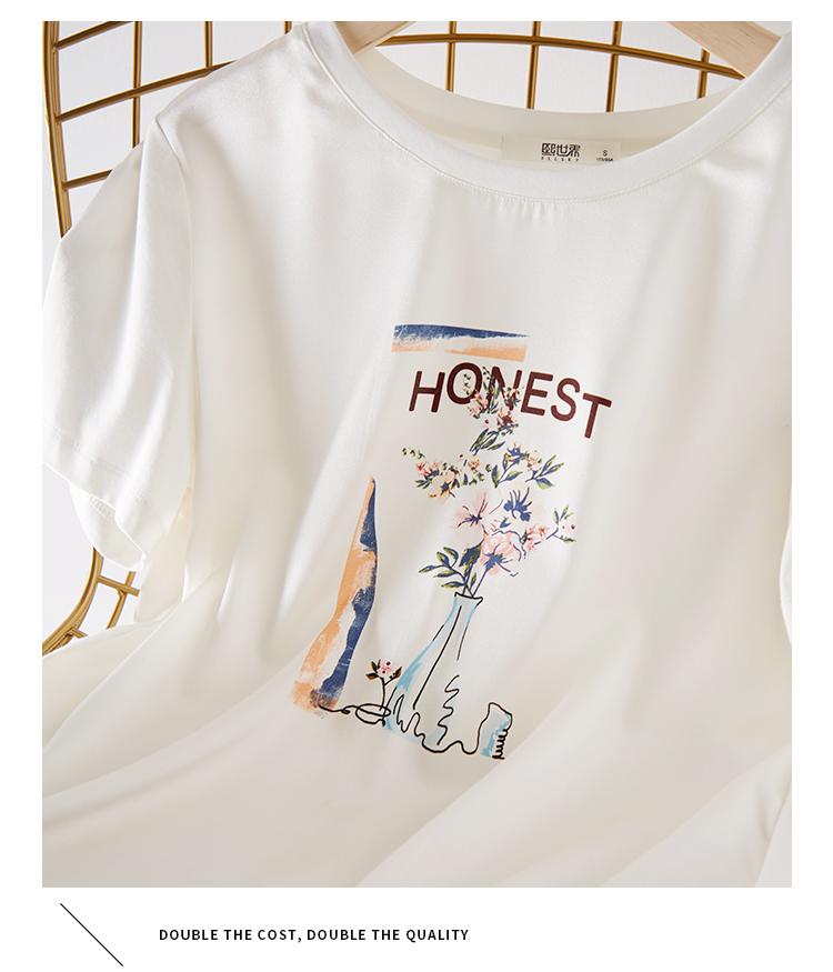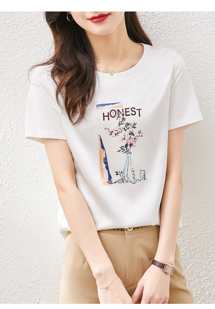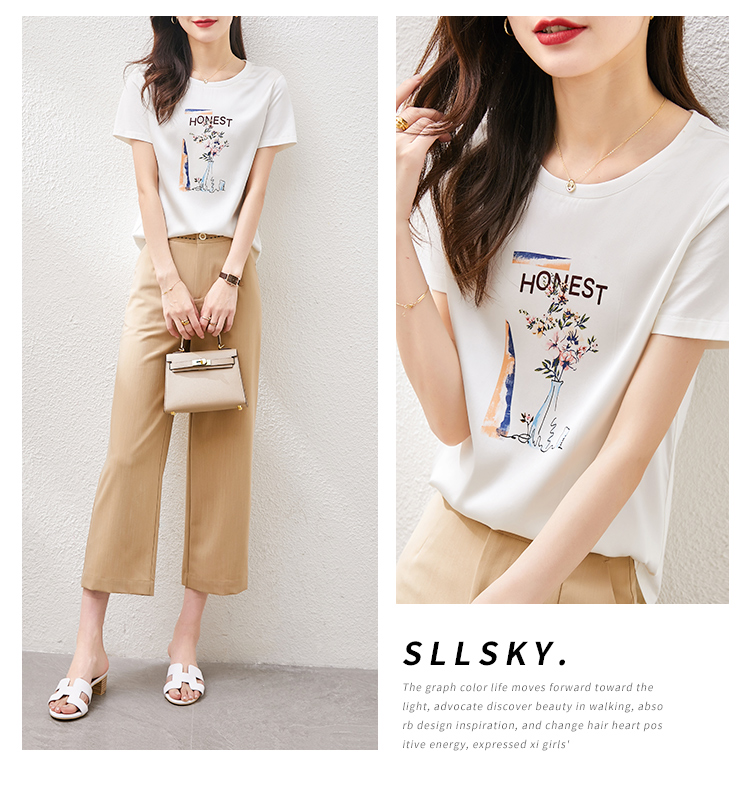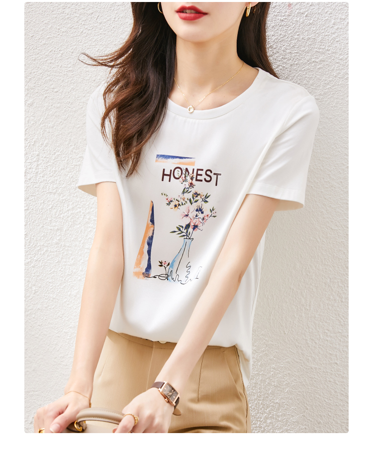 【专属特价】熙世界真丝印花t恤女短袖夏2025新款宽松显瘦百搭圆领桑蚕丝上衣