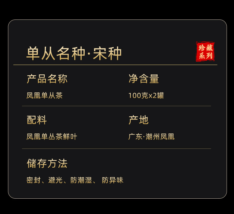 天池1392单丛名茶宋种 凤凰单丛茶 特级珍藏100克罐装
