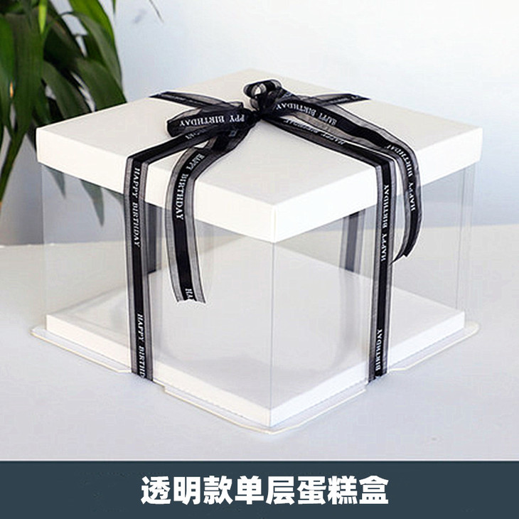 透明单层蛋糕盒 4/6/8/10/12/14寸 网红蛋糕盒 (没有彩带)(用时请撕膜)