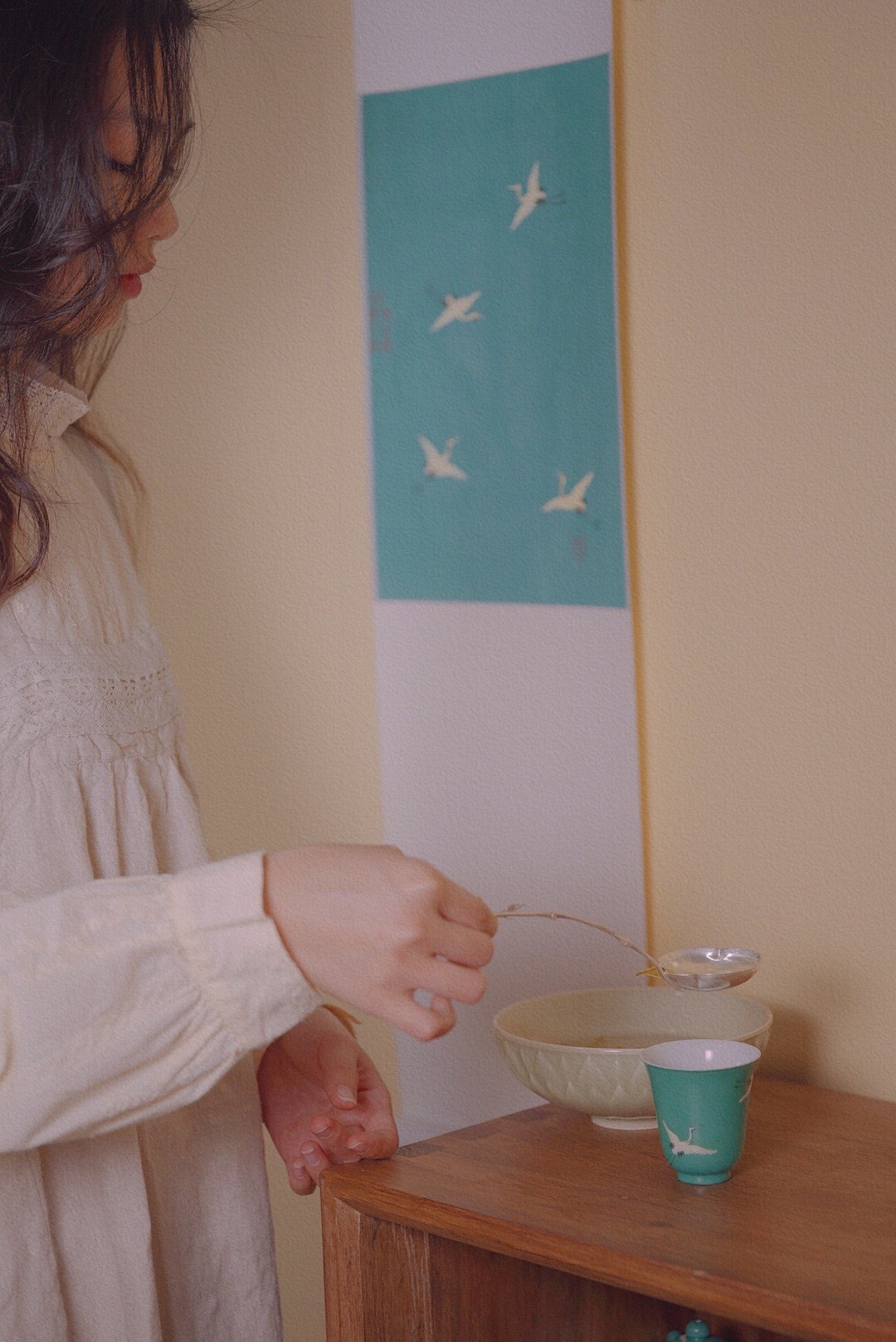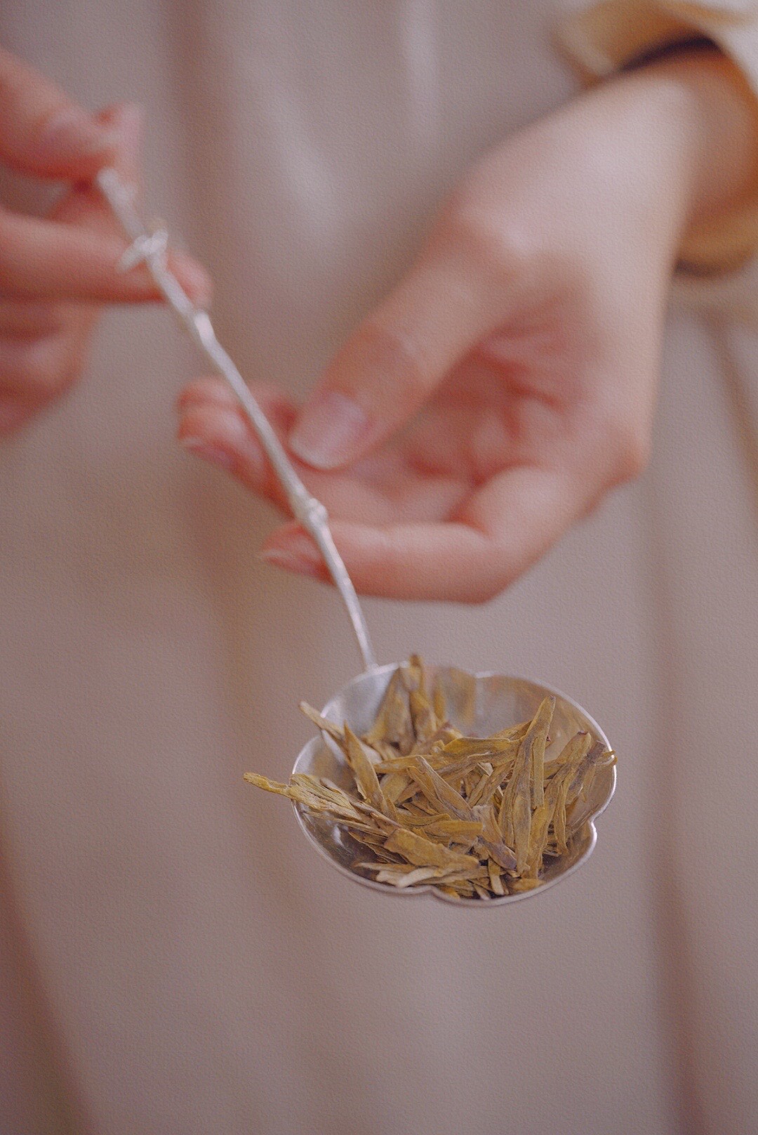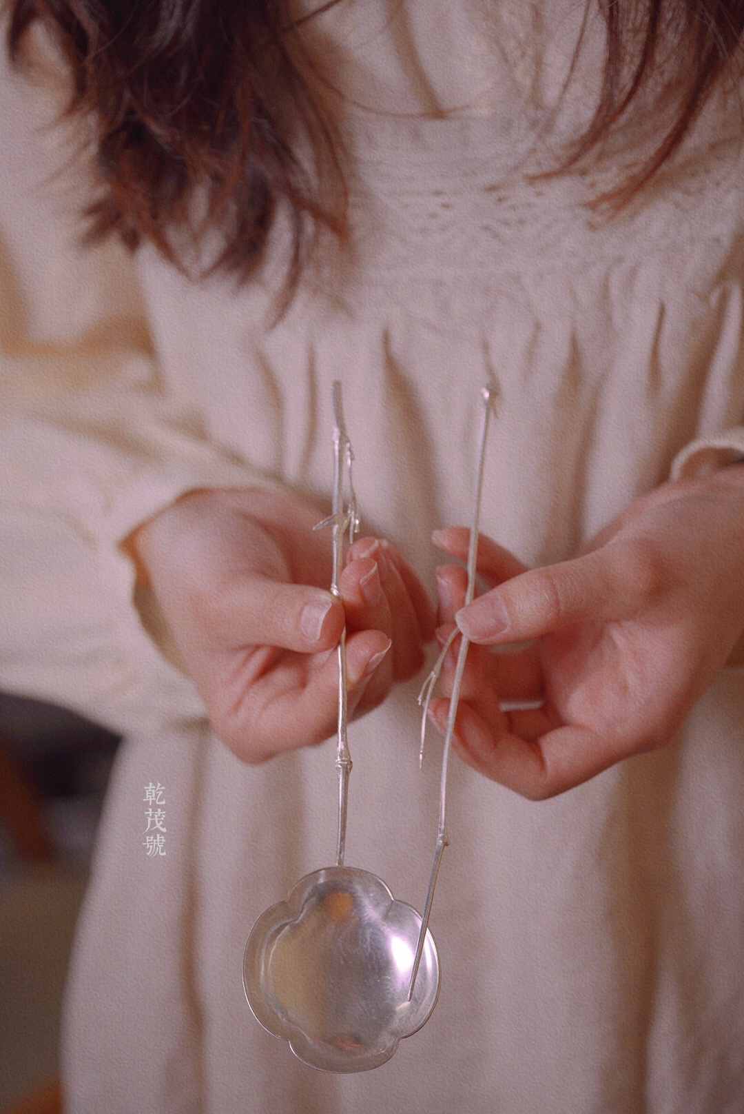 乾茂号/银分茶勺 竹柄海棠型银制分茶勺 尺寸:总长18cm 勺直径5.5*5.9