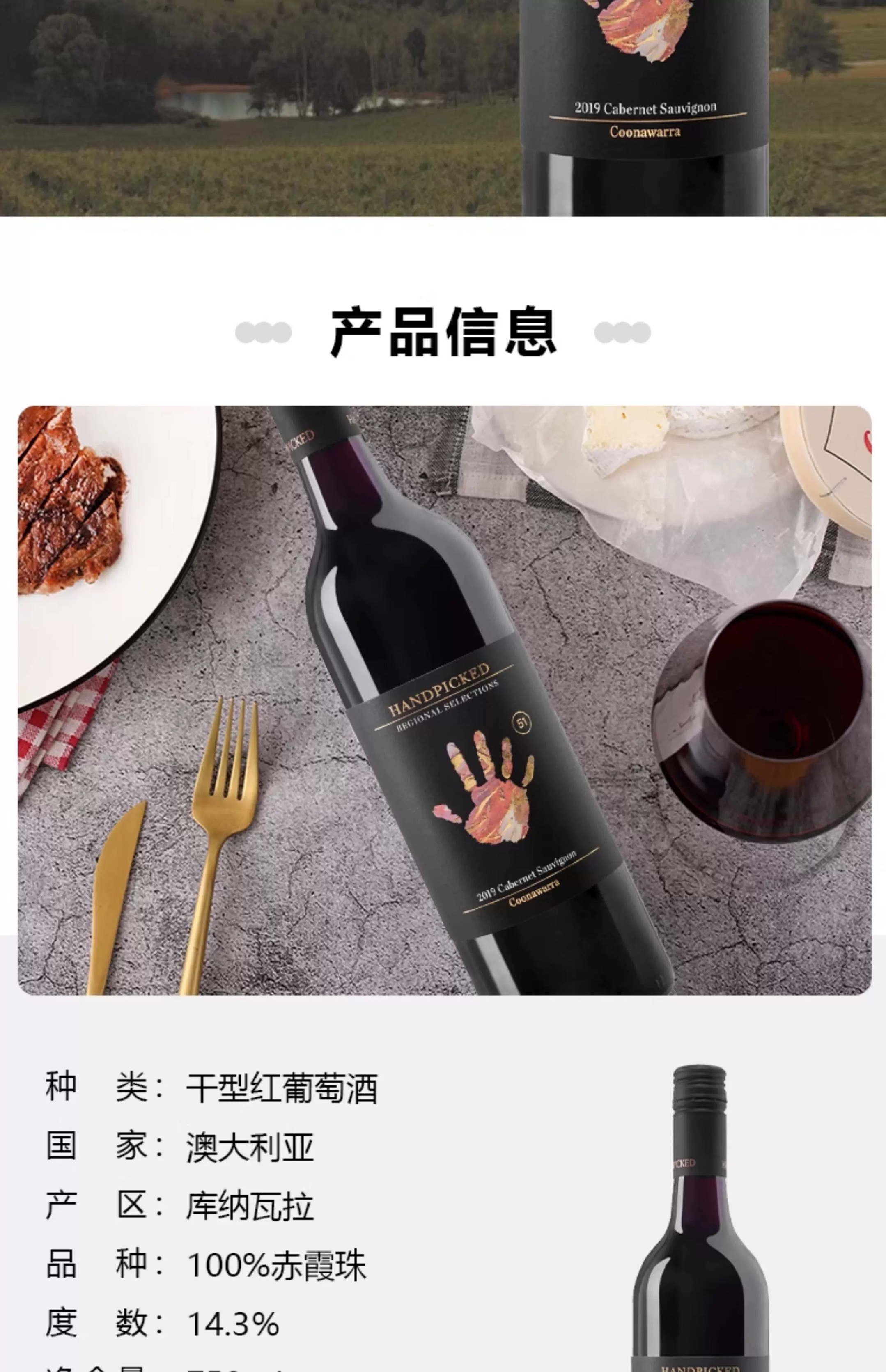 首彩51 赤霞珠干红葡萄酒 澳洲库纳瓦拉原瓶进口红酒 750ml 官方直营正品 红五星级酒庄