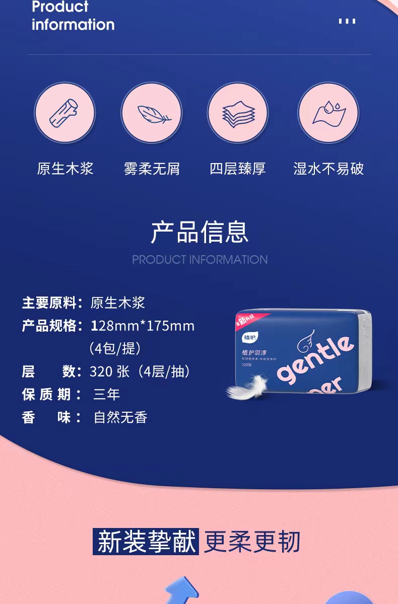 植护羽淳(全新升级)系列原木抽纸 128*175mm*4层* 80抽 (10包*1提)