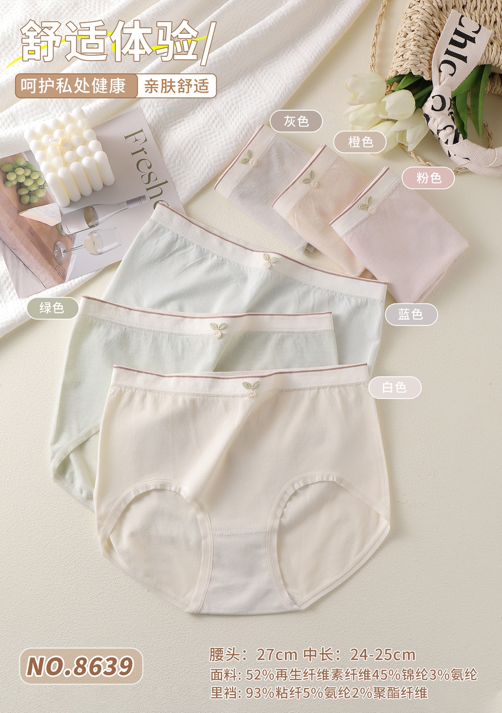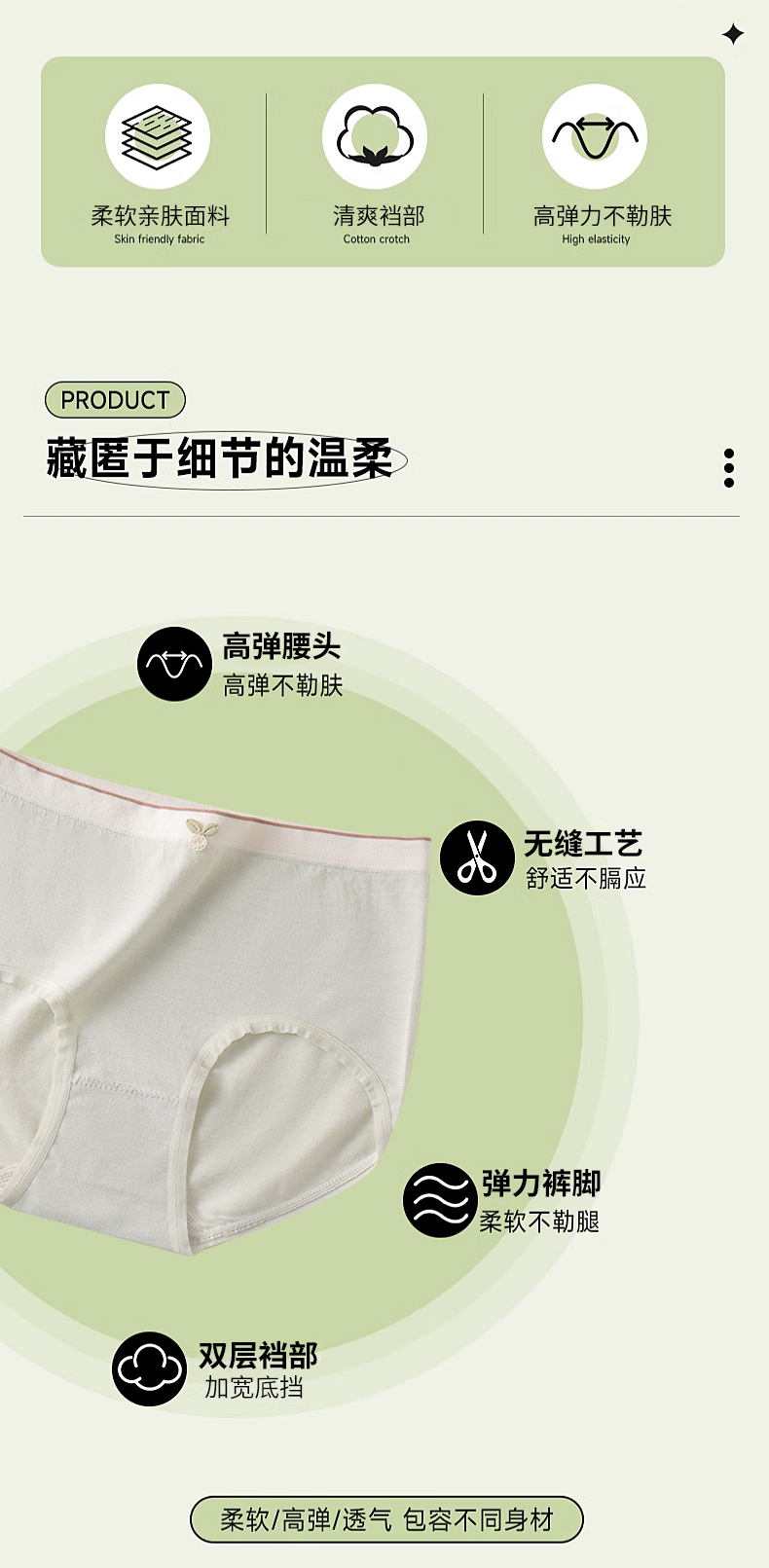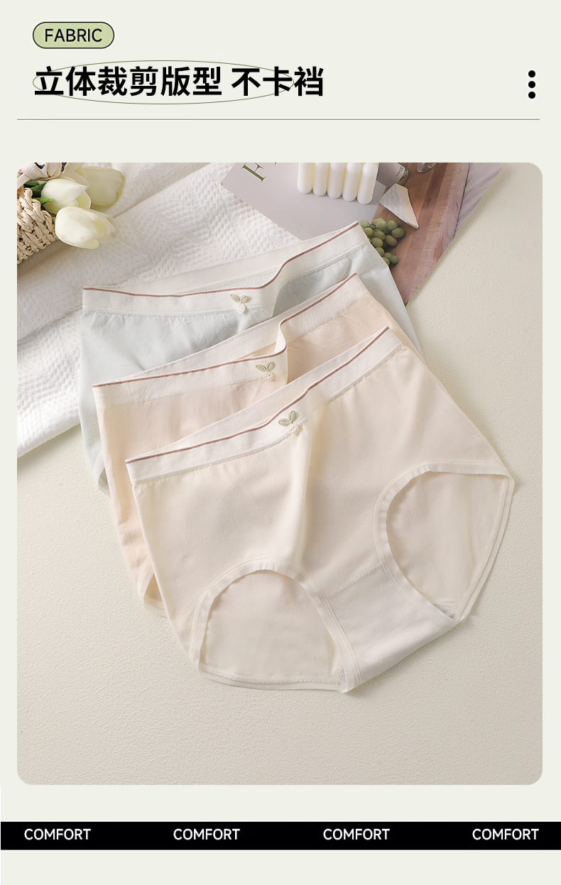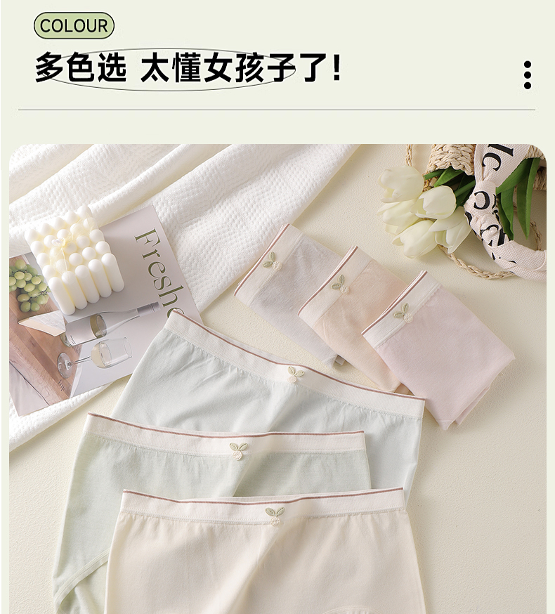 女士中腰简约内裤无痕女式抗菌裆舒适可爱学生少女风8639