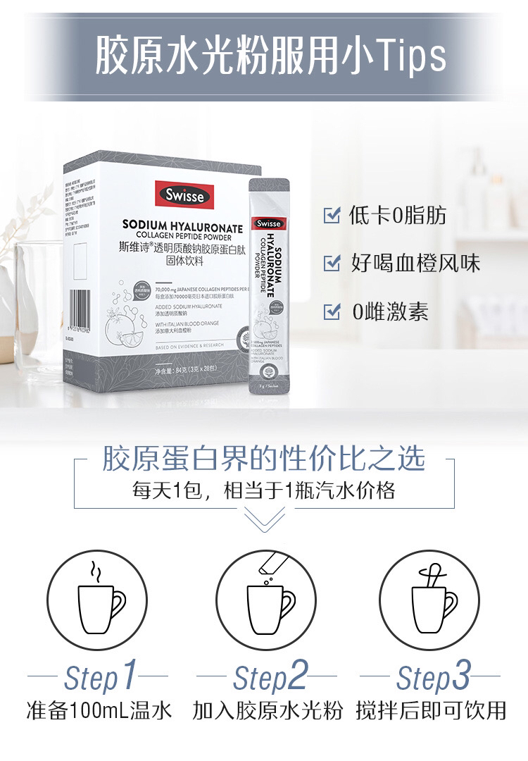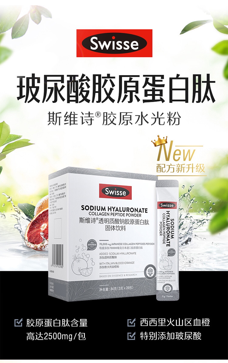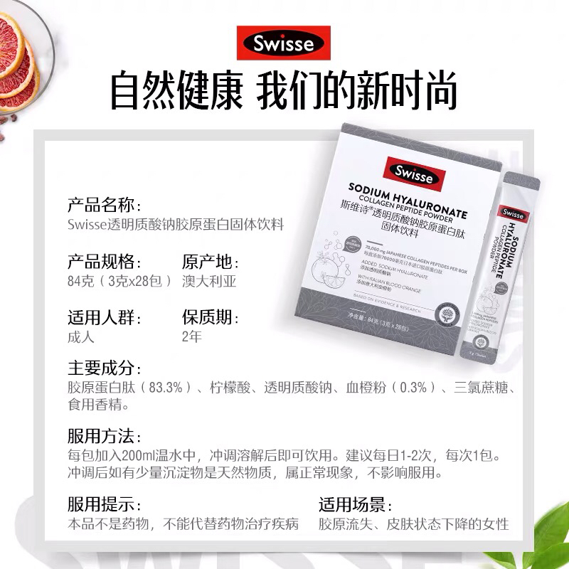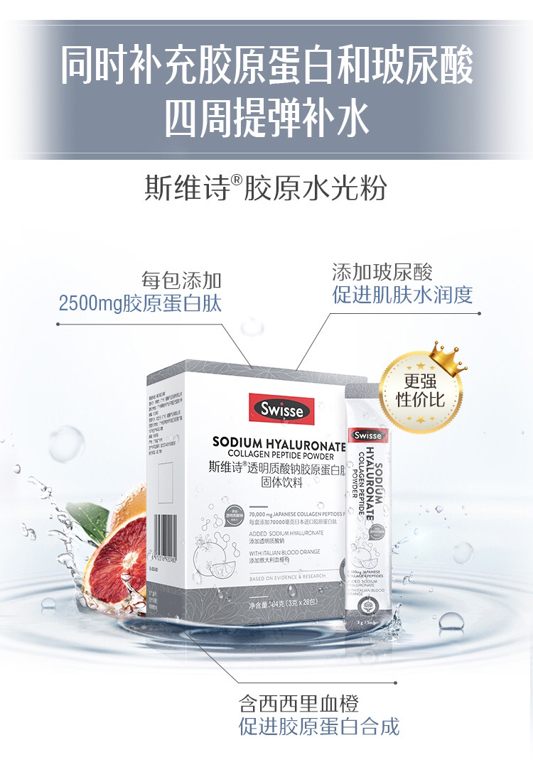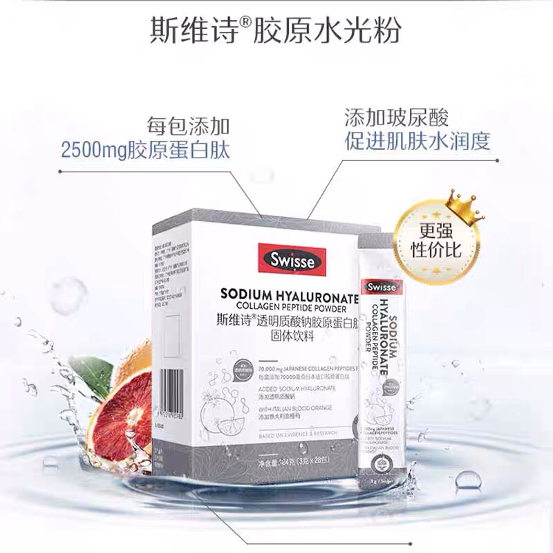 swisse斯维诗玻尿酸胶原蛋白肽饮品水光粉-28袋-小分子血橙胶原肽-会员6折