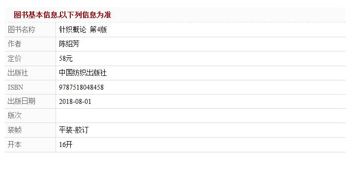 中国纺织出版社针织概论(第4版)/陈绍芳 编者:贺庆玉 大中专文科文学艺术 中国纺织出版社