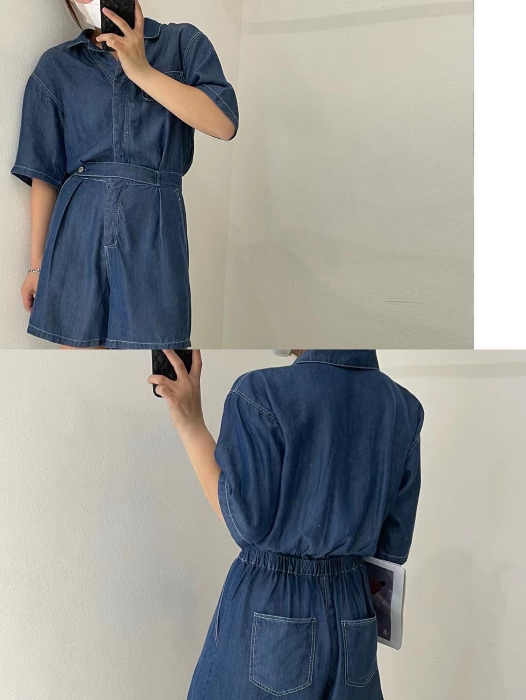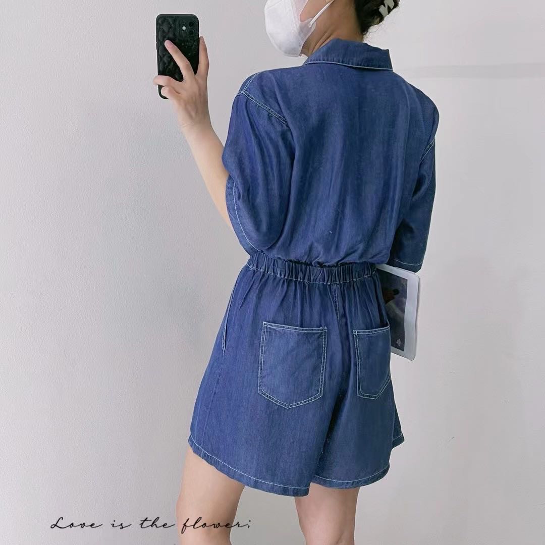 220328005# 牛仔连体短裤 均码,半松紧腰