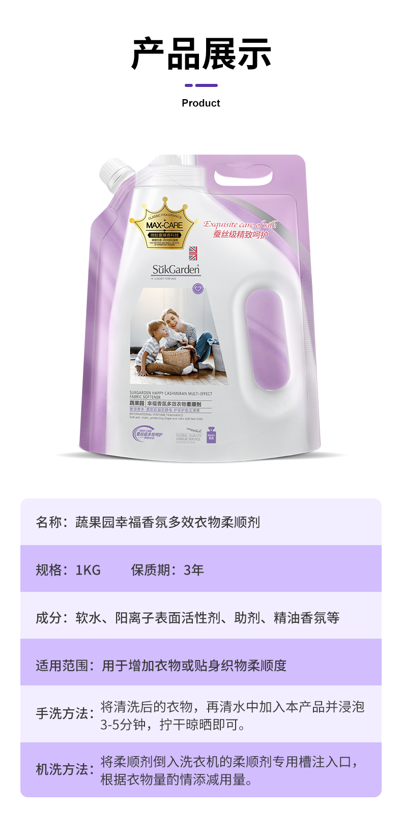 【SukGarden蔬果园】幸福香氛多效衣物柔顺剂(袋装)-FN