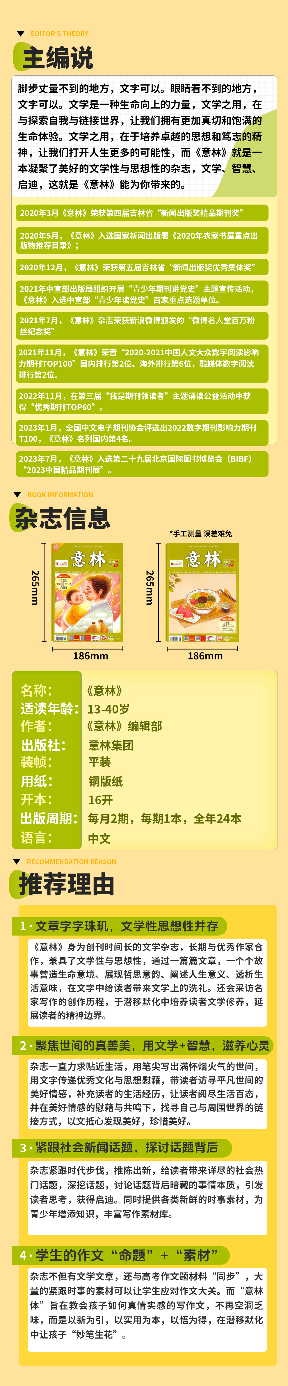 说明:意林2025年1月开始单价由9元调整为10元,全年定价240,售价216元
