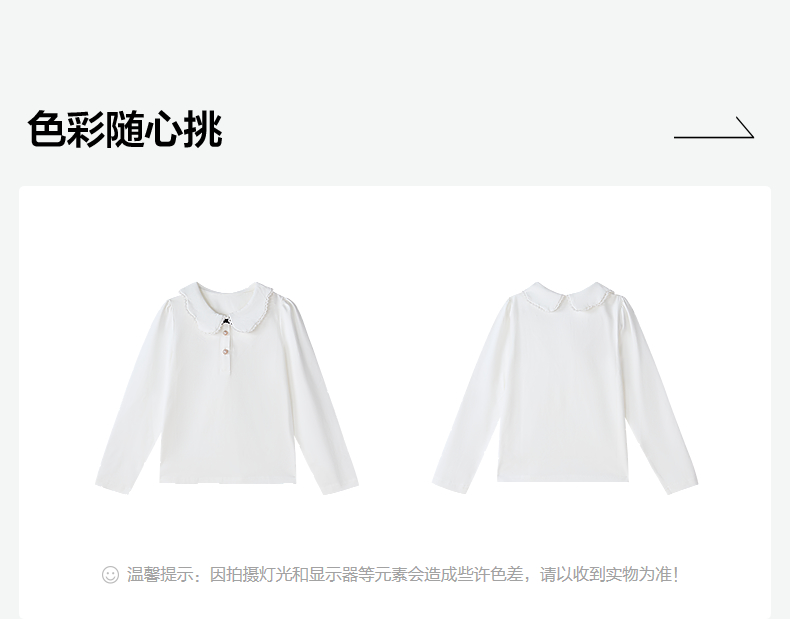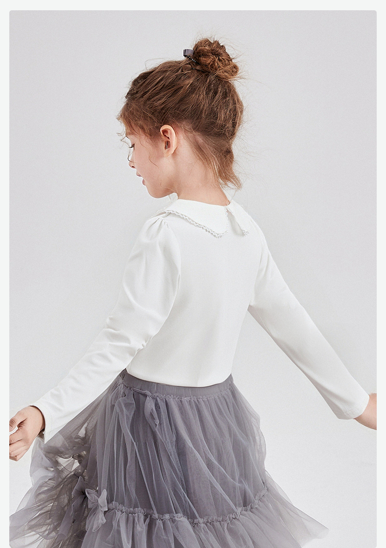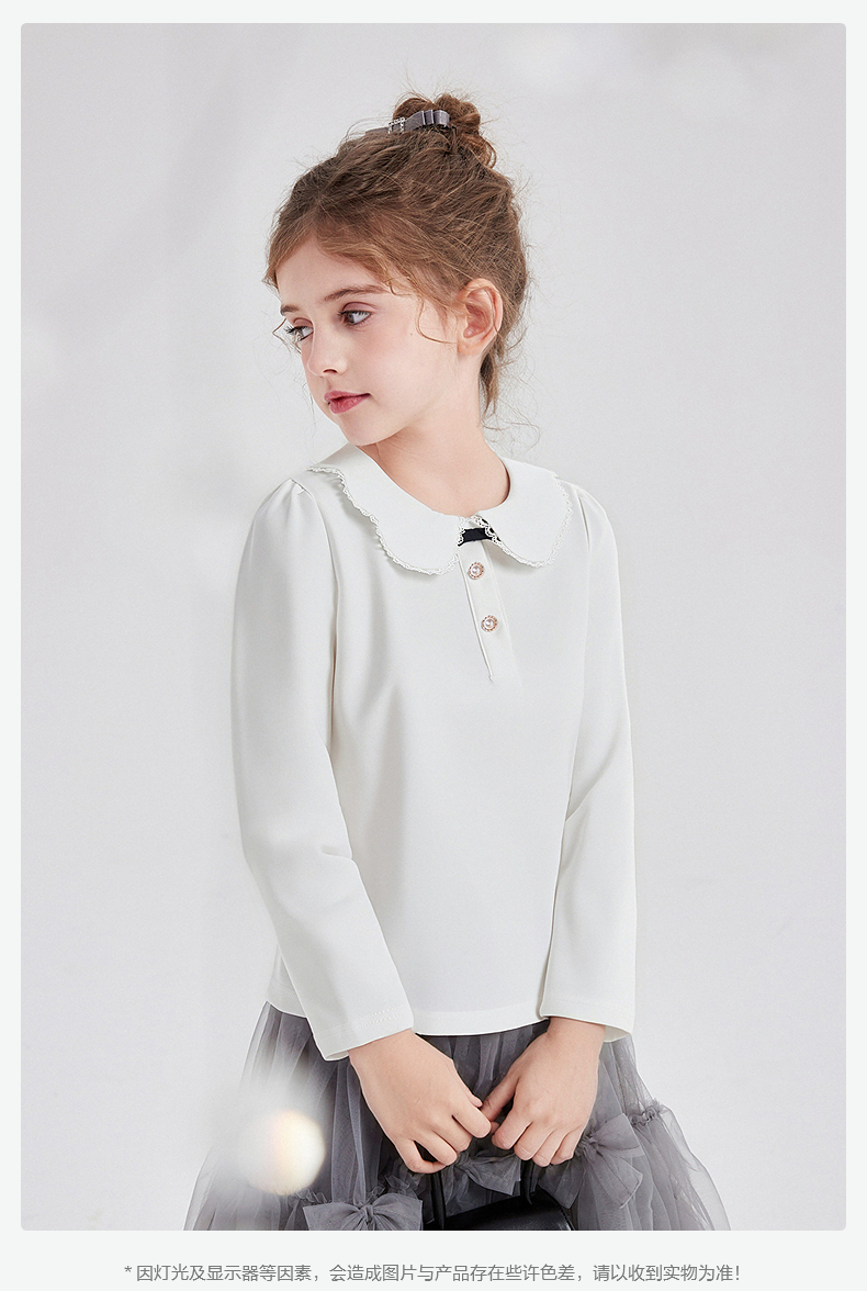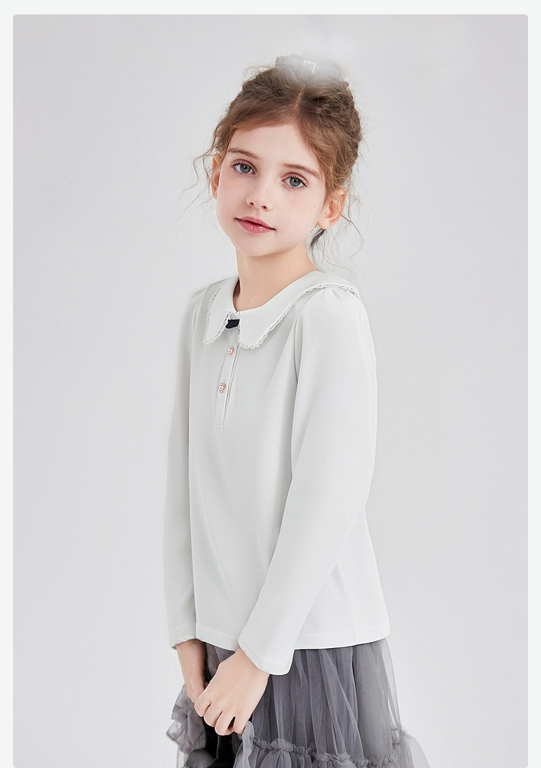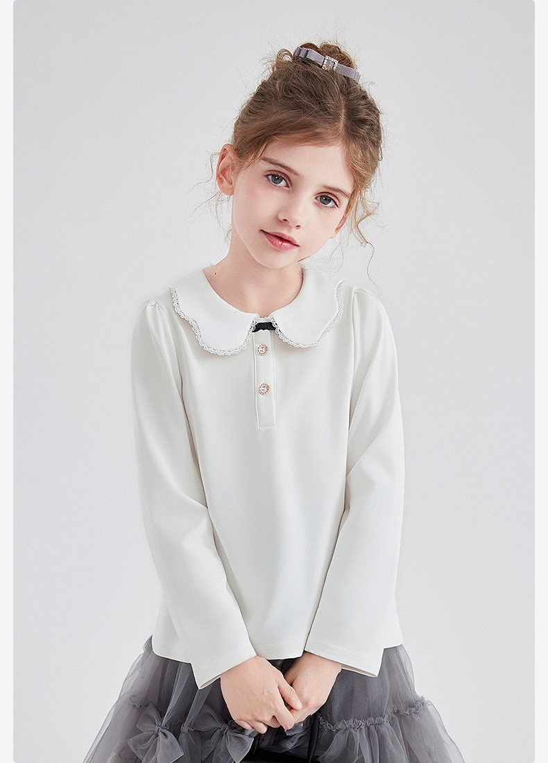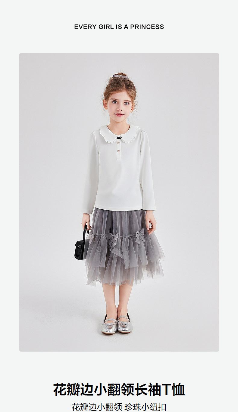 笛莎Deesha 童装女童T恤2025秋新款女童花瓣边小翻领长袖T恤
