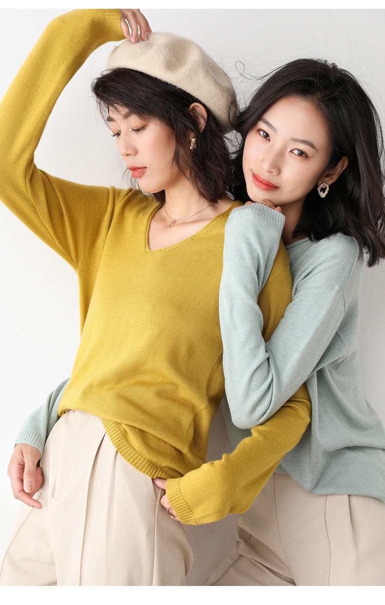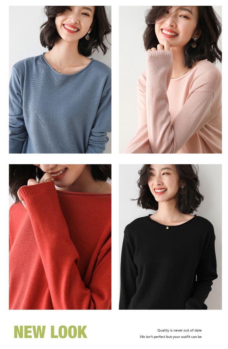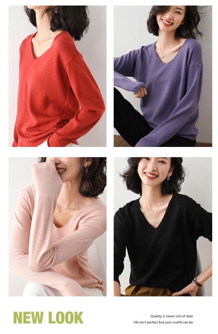 79元到手两件 拍两件发货【轻梵 卷边圆领V领针织衫】新款卷边圆V领 宽松洋气针织衫 减龄显瘦打底衫 ZXT