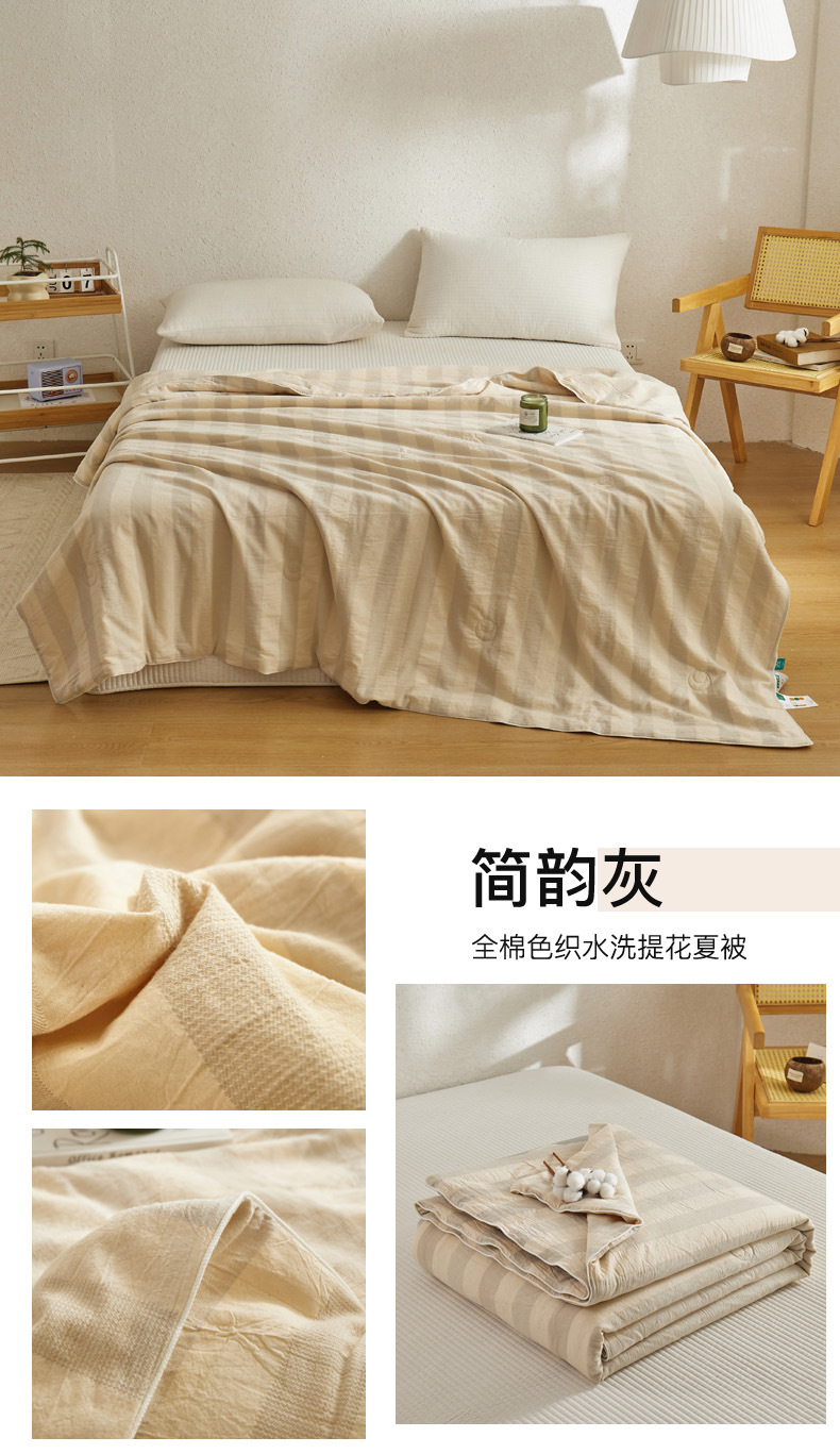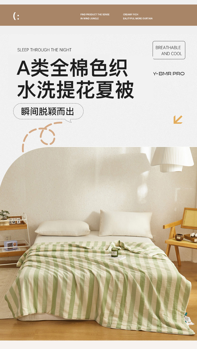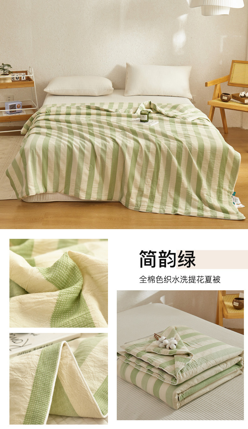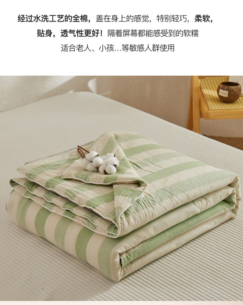 【大豆宽条纹夏被】A类水洗提花大豆夏被宽条纹夏季被子双人全棉空调被