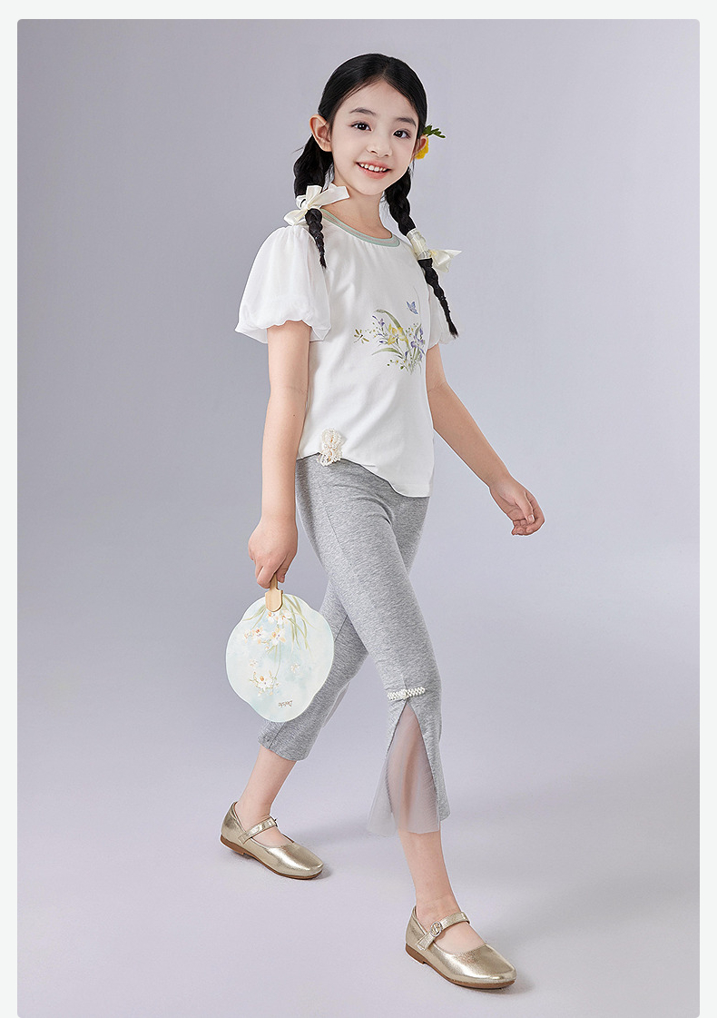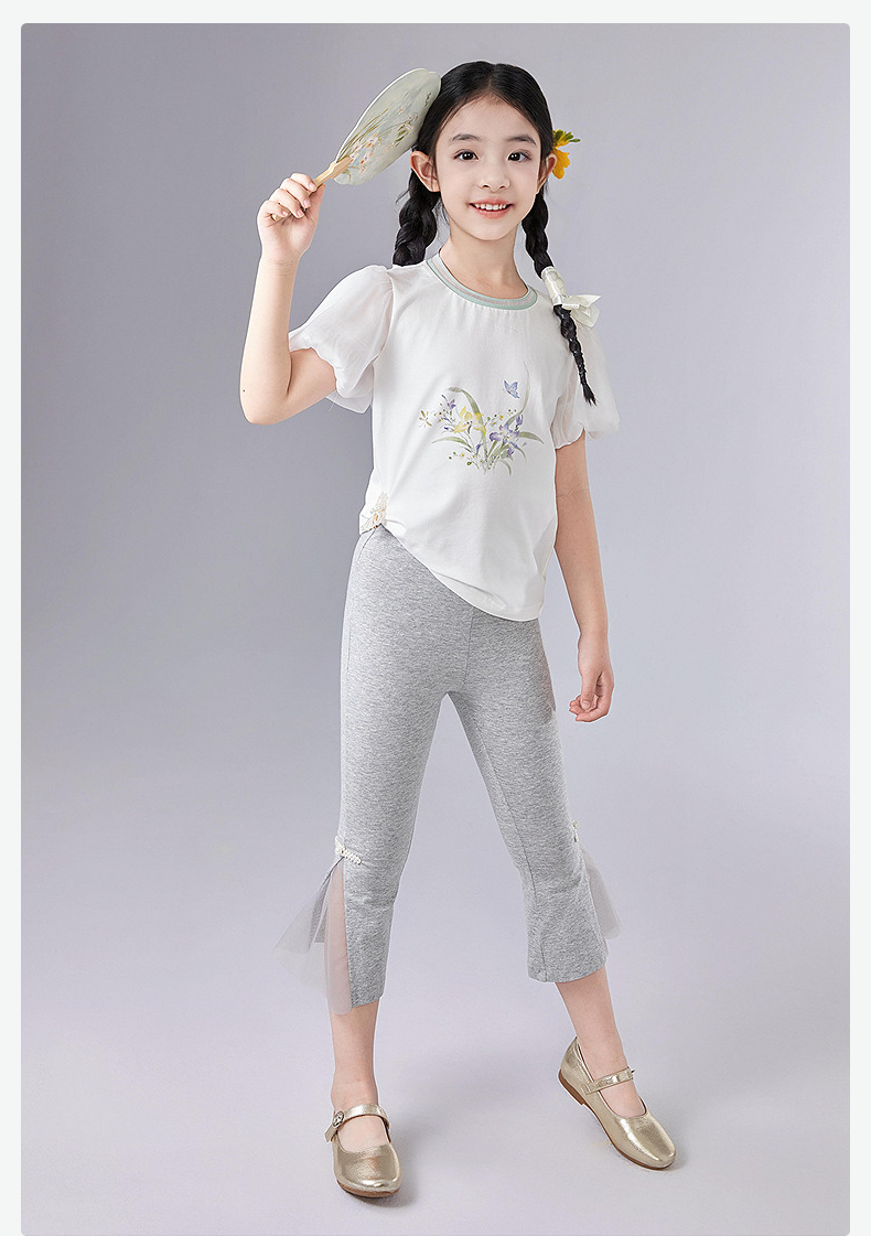 笛莎Deesha 童装女童裤子2025夏新款女童国风喇叭打底裤