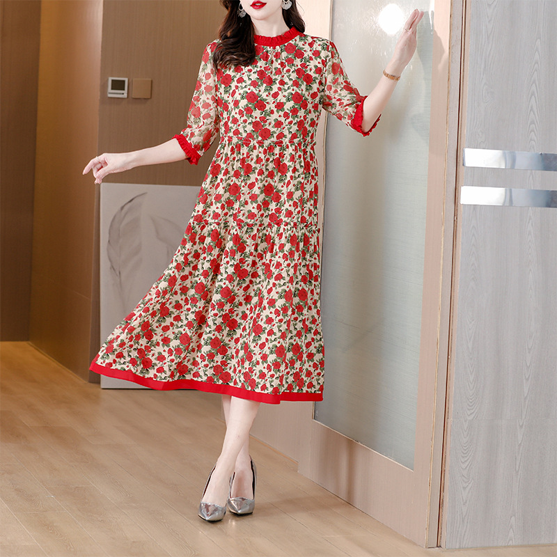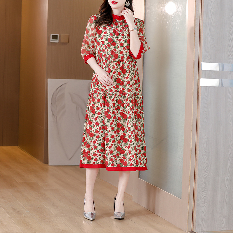 时尚气质复古优雅减龄碎花连衣裙AHM-nwy8907