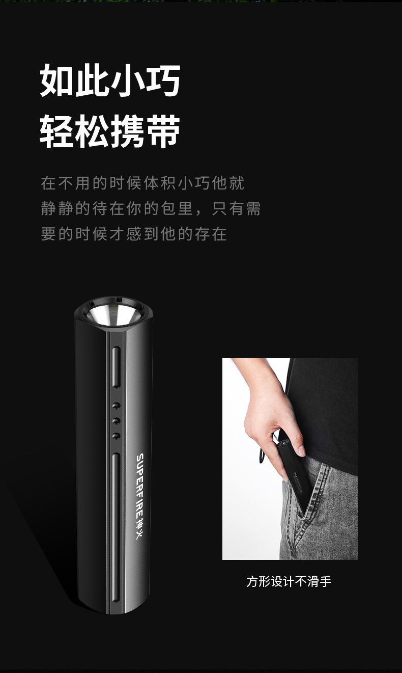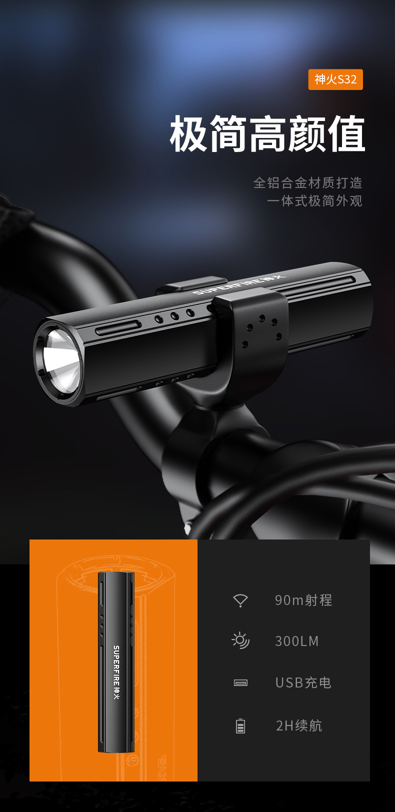 SUPERFIRE神火S32手电筒强光远射长续航迷你户外便携充电LED手电自行车灯