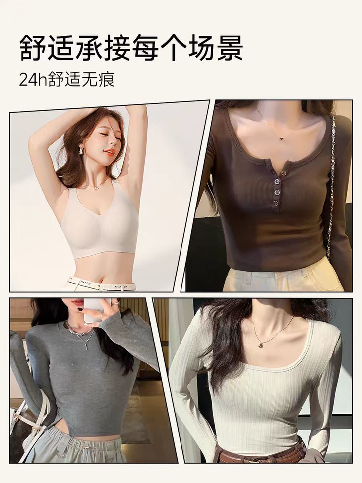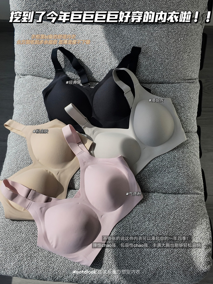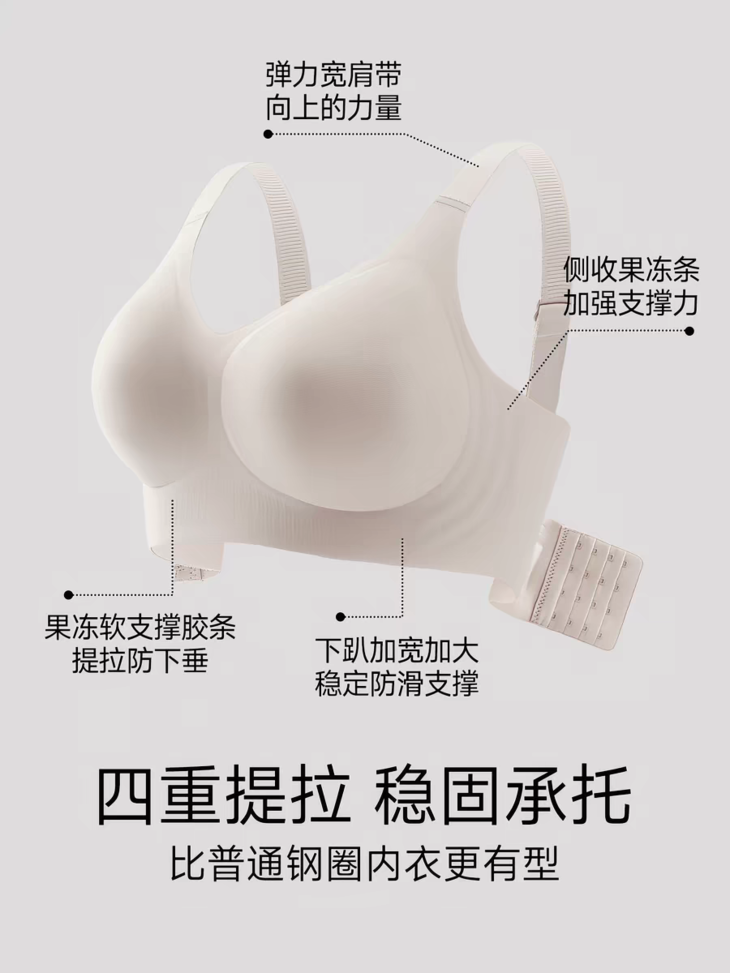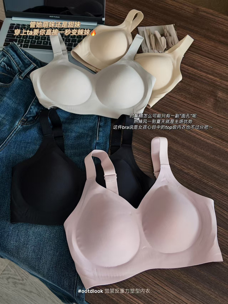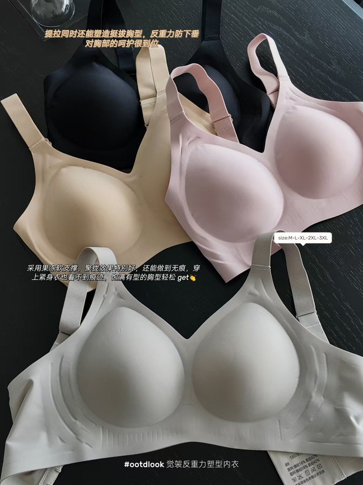 告别钢圈勒痕 才发现无钢圈内衣的“天花板”在这里!👙以前总觉得无钢圈=没型 直到遇见它,我才知道什么叫“温柔又有力” ✅反重力双重提拉排扣:像隐形手臂托住胸部,走路跑步都不晃 ✅果冻胶全包:360°贴肤承托,脂肪不乱跑,舒服到像没穿 ✅W力学提拉:下垂?不存在!胸距收窄,穿紧身衣再也不用p图 ✅侧收副乳:加宽侧翼,腋下肉肉乖乖归位,抬手也不露馅 姐妹们,内衣真的不能将就选对内衣,真的不只是换件衣服 是换一种挺拔自信的状态!这件,我服了!