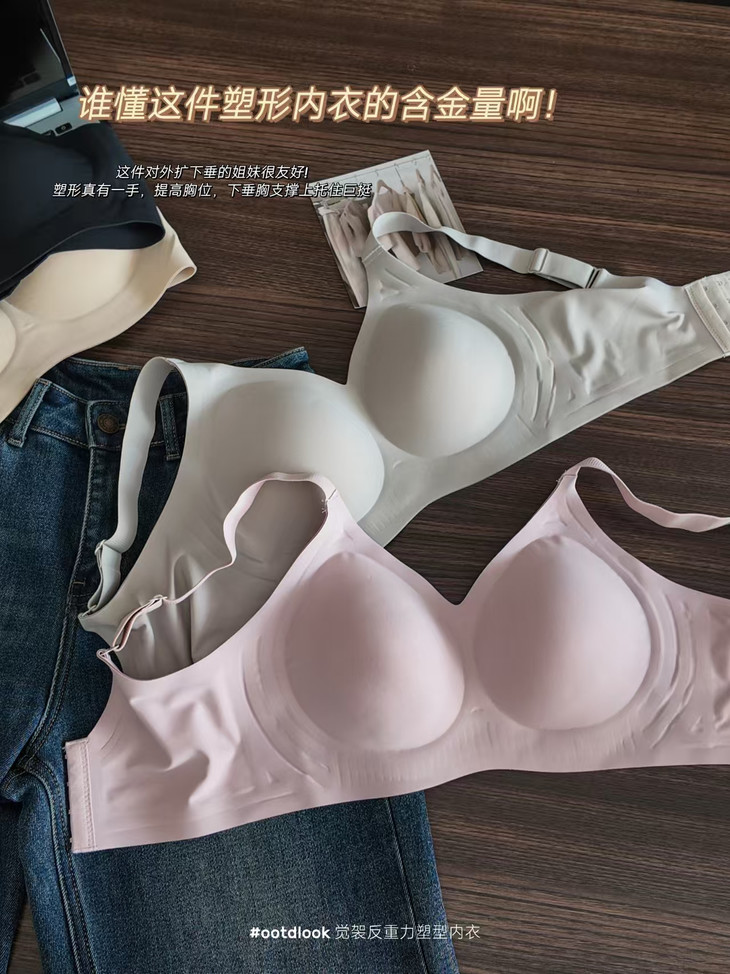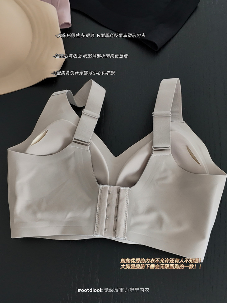 无钢圈也能这么提拉,防下垂绝了!! 大胸显瘦,小胸圆润有型!!! 显胖、下垂都给我买它 这件【觉袈反重力塑形内衣】真是绝了 果冻胶材质,就像一双稳稳的隐形手掌,从下往上、从外往里把肉肉全兜住、提起来 大胸?托得住!跑跳都不带晃的 下垂?不存在!视觉上直接给你提拉好几个度,瞬间拥有天生好胸型 穿上它,再也不用偷偷羡慕别人了,自信直接拉满