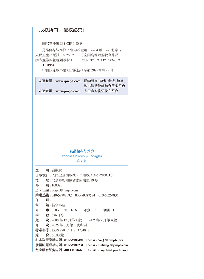 药品储存与养护 第4四版 十四五规划教材全国高等职业教育药品类专业第四轮规划教材 宫淑秋 供药品经营与管理等专业用人民卫生出版社