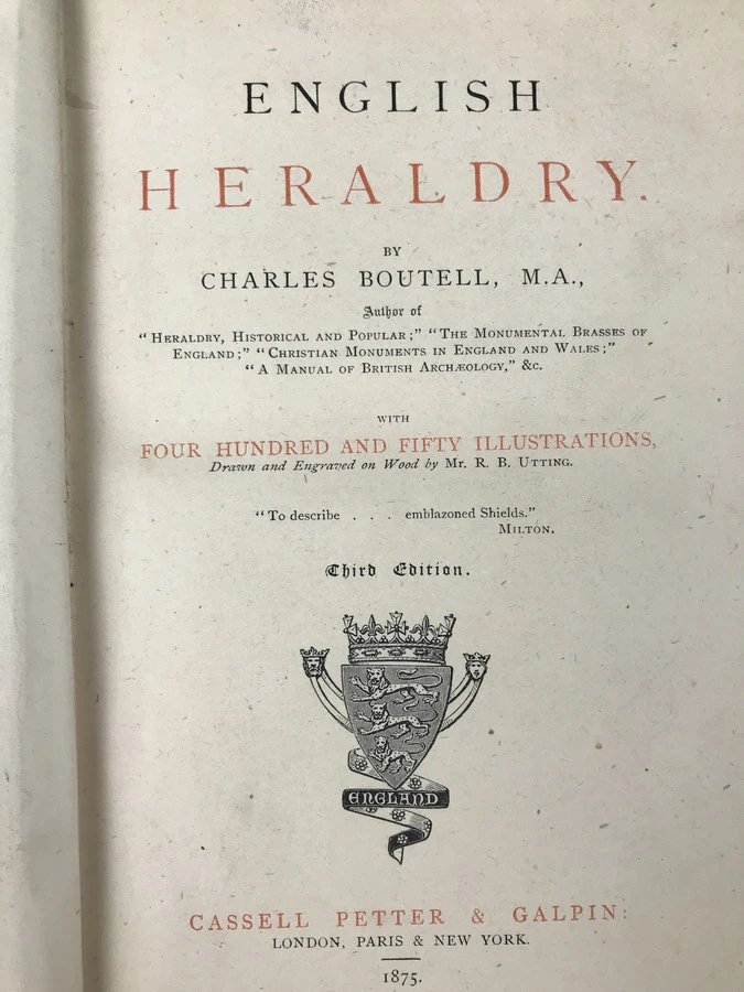 1875年 布铁尔《英国纹章学》 450幅插图(含少量手工上色) 漆布精装32开
