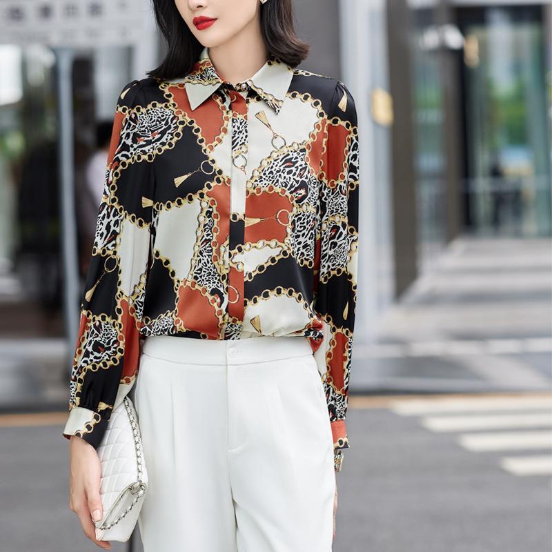娜璐多 2023年豹纹衬衫女+直筒裤两件套女百搭秋韩版新款洋气通勤