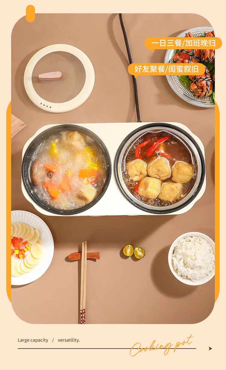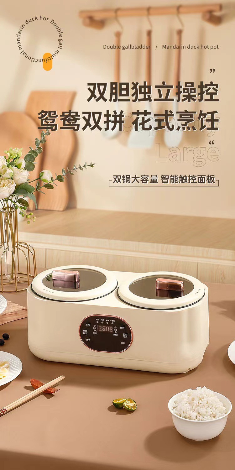 【煎炒焖炖煮涮!一锅多能】双胆电饭煲多功能电火锅智能电煮锅家用厨房全自动智能保温一体鸳鸯锅,双担独立操控。ry