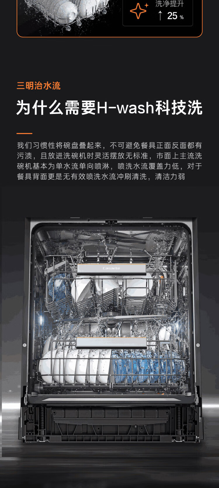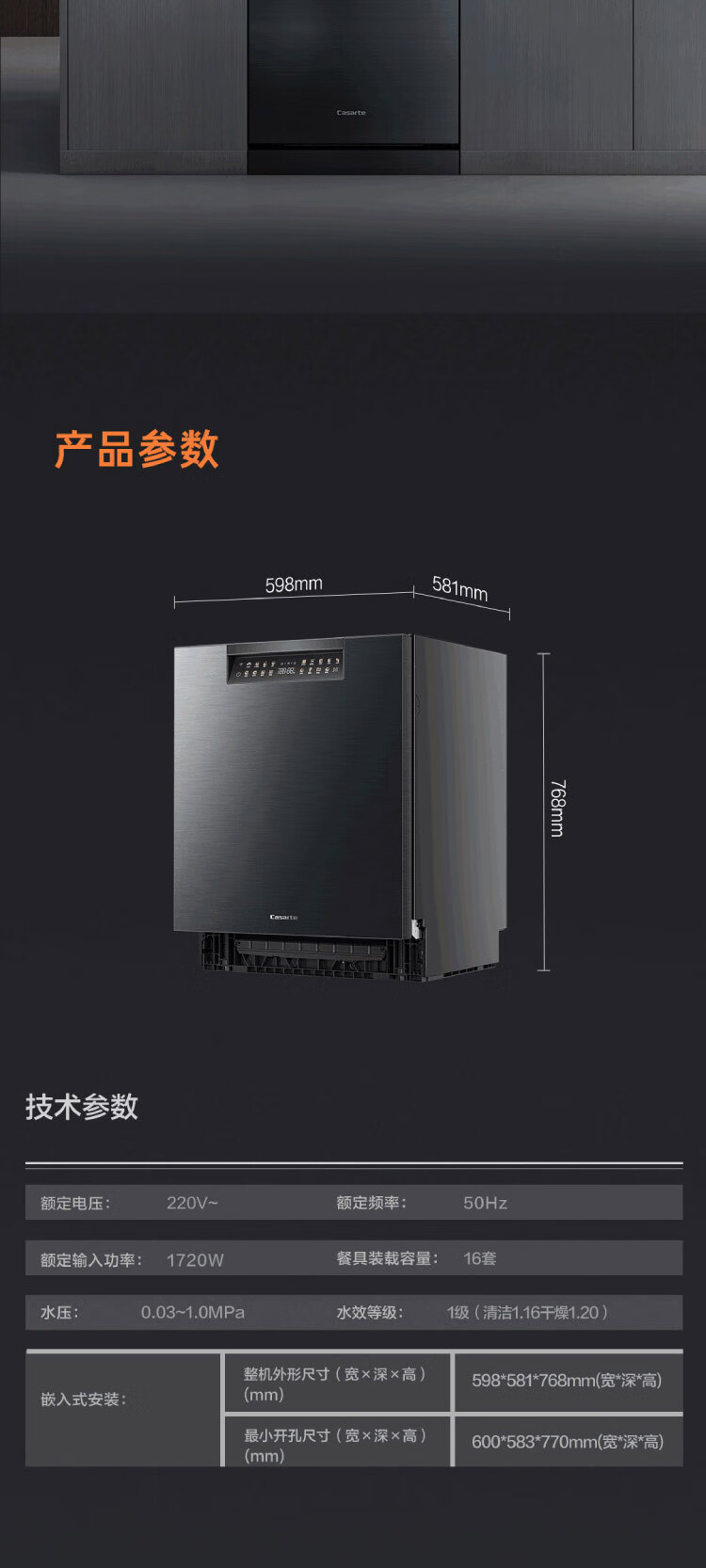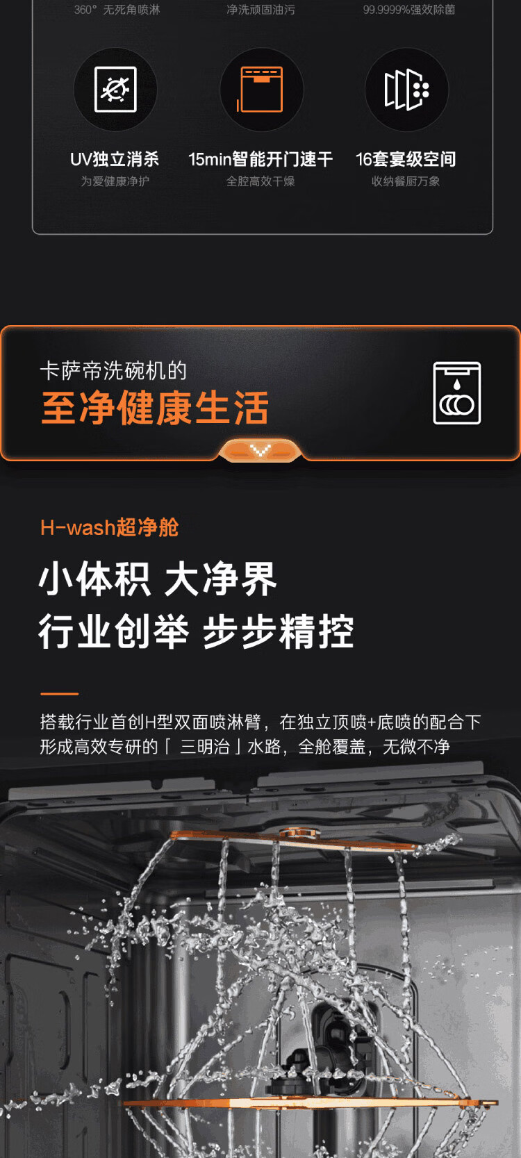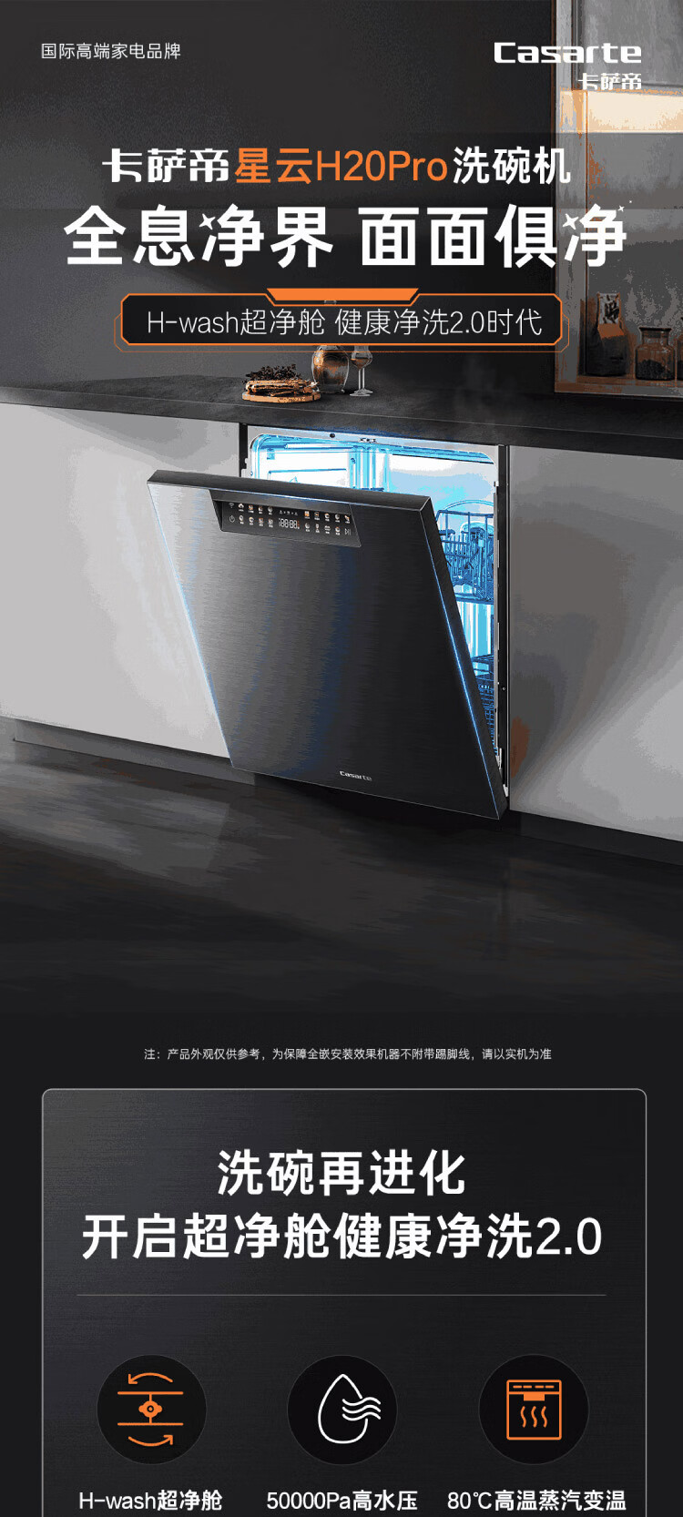 新款 卡萨帝H20PRO 16套洗碗机 大容量 智能开门速干 高温消杀外置水路 上下分区洗S46HGU1 H20pro大容量16套