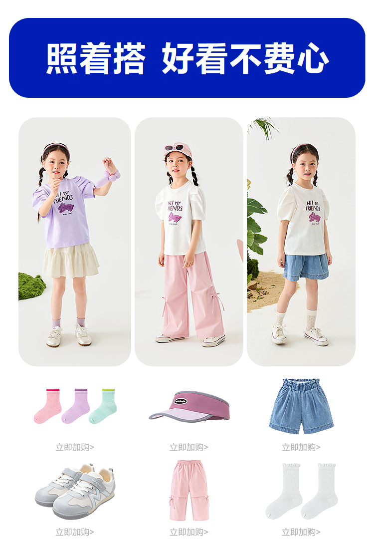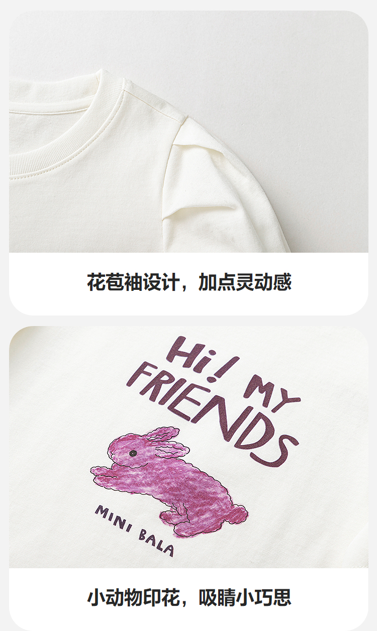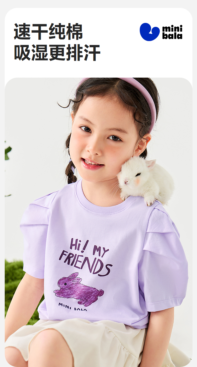 【99元任选3件】【速干纯棉】迷你巴拉女童不闷汗柔软亲肤不易变形短袖T恤