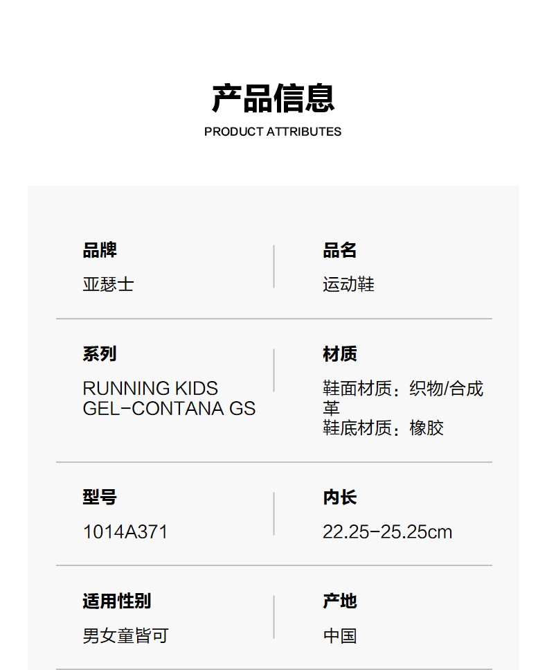 ASICS/亚瑟士童鞋2024灵敏缓震跑步鞋GEL胶柔韧舒适缓冲CONTANA