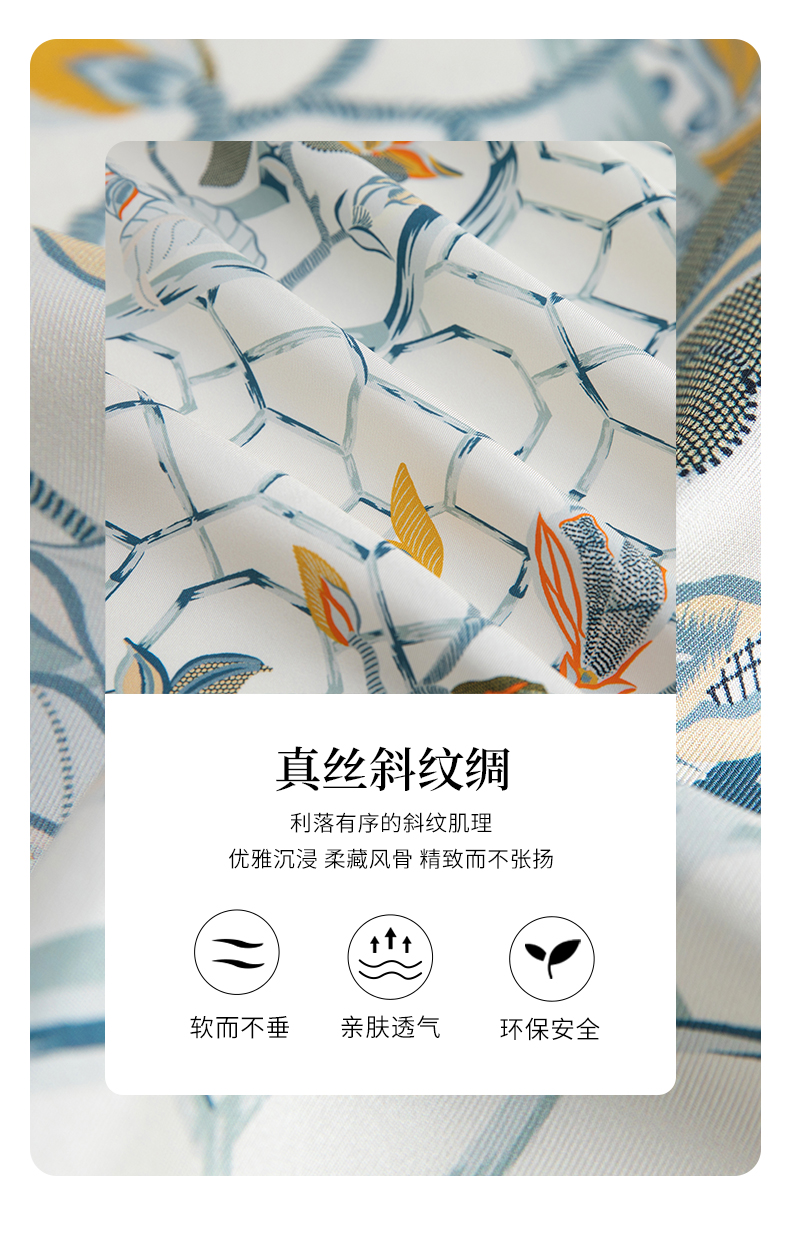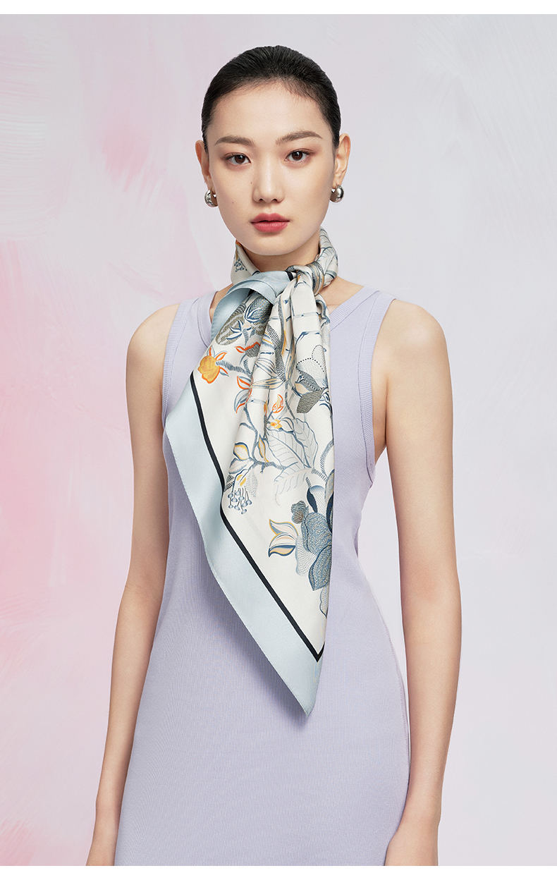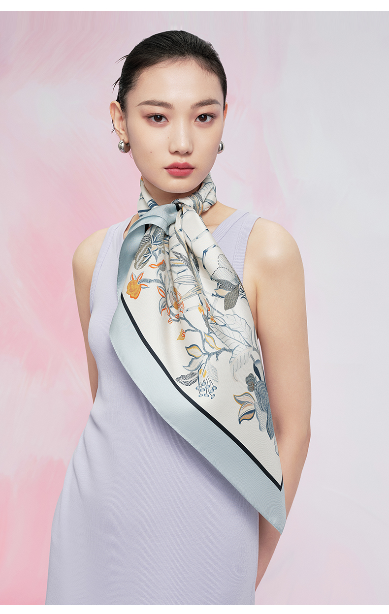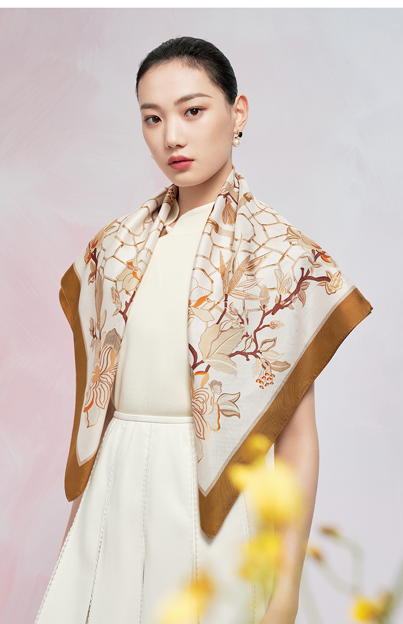 万事利“玉兰赋”63厘米双面印花真丝中方巾