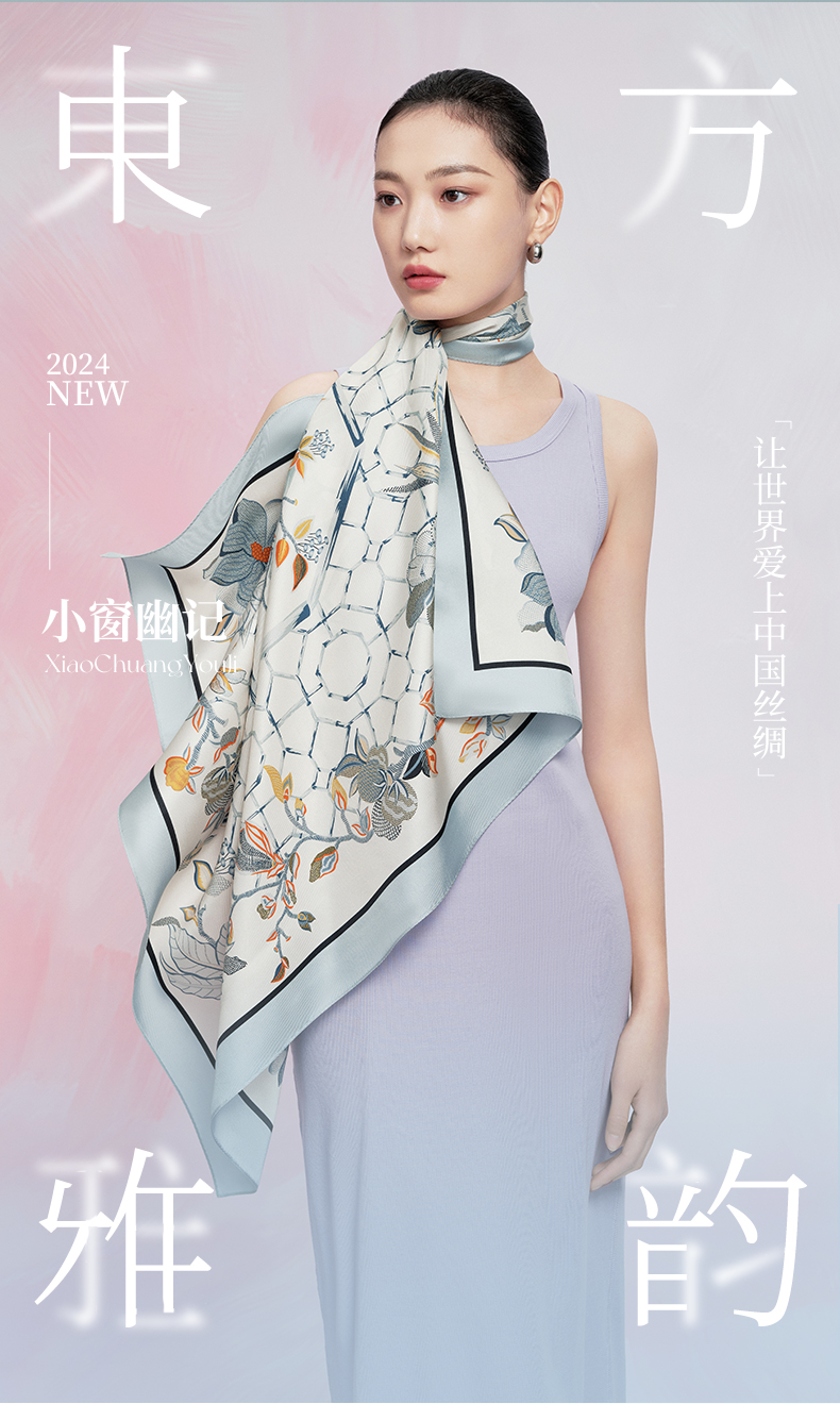 万事利“小窗幽记”88厘米双面印花大方巾