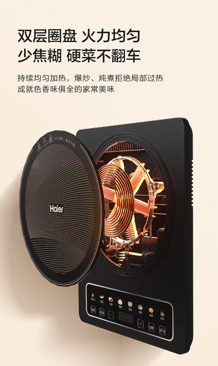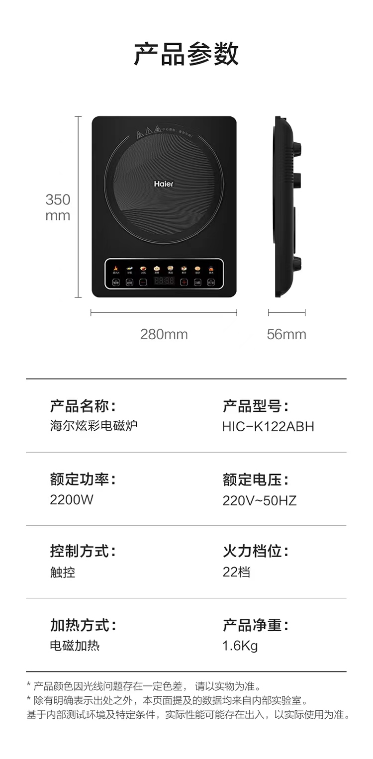 食尚系列-海尔炫彩电磁炉HIC-K122ABH家用新款多功能炒菜锅大功率智能
