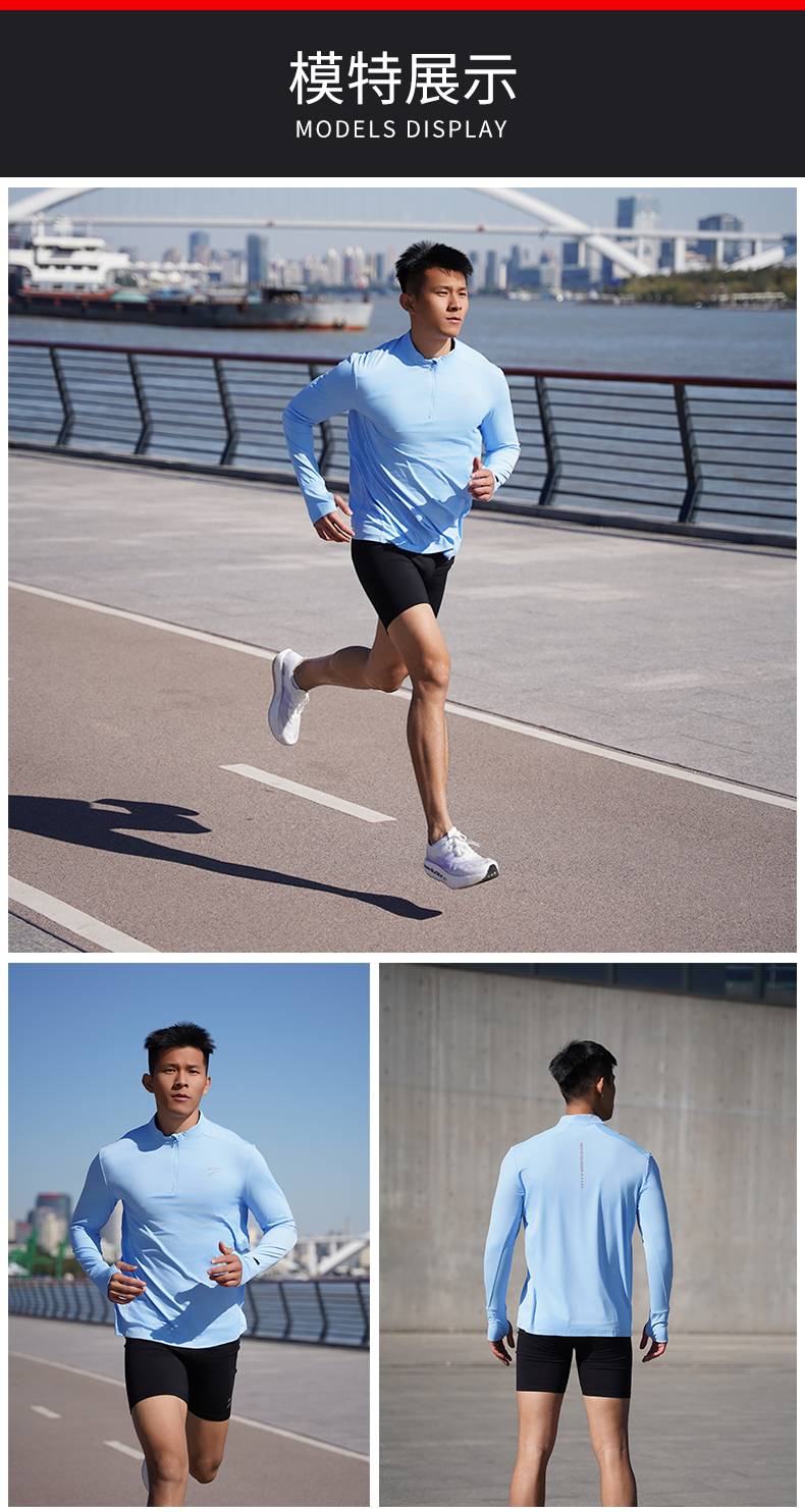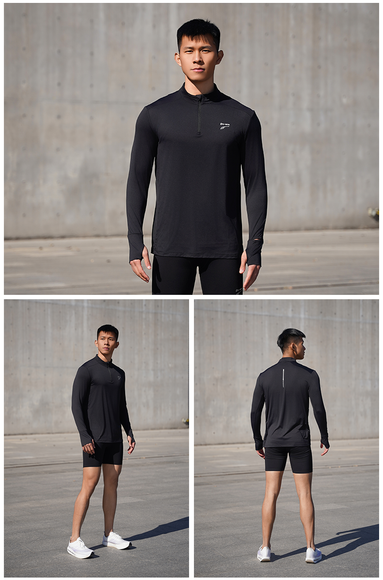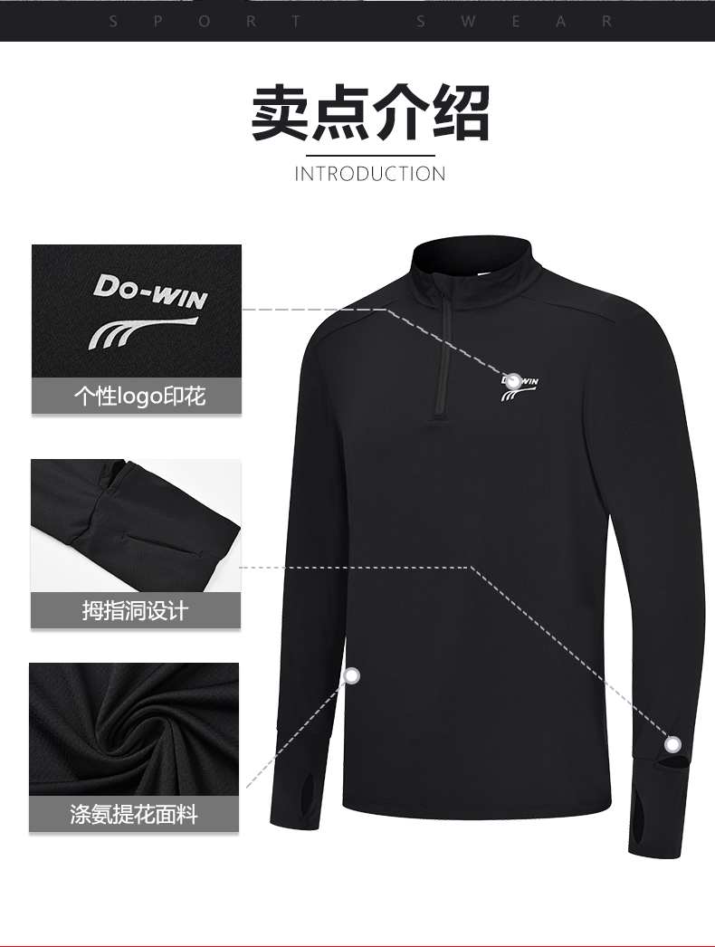 多威运动上衣立领半门襟男士吸湿速干长袖T恤2342450
