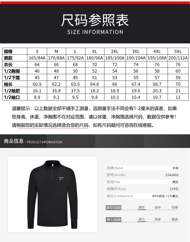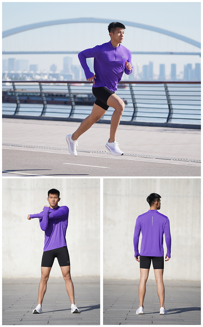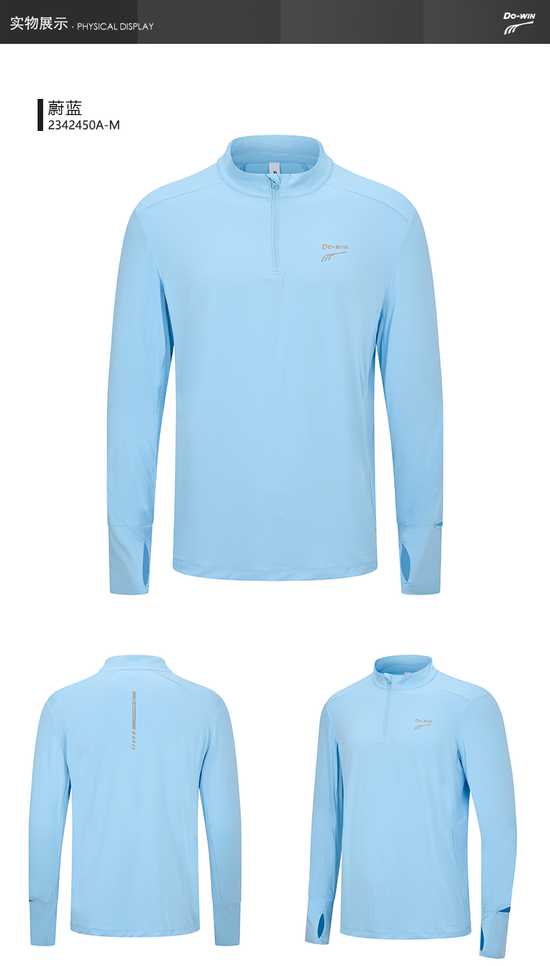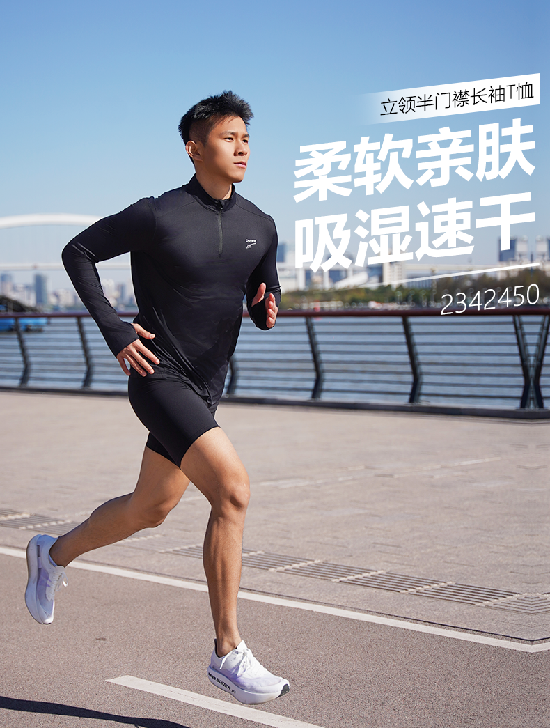多威运动上衣立领半门襟男士吸湿速干长袖T恤2342450