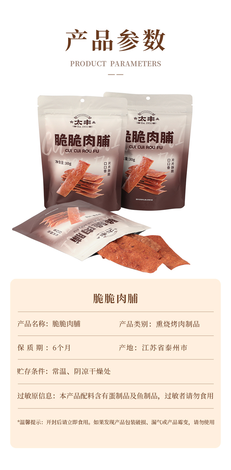 太丰食品脆脆肉脯30g 零食网红解馋猪肉干休闲小吃办公室小袋