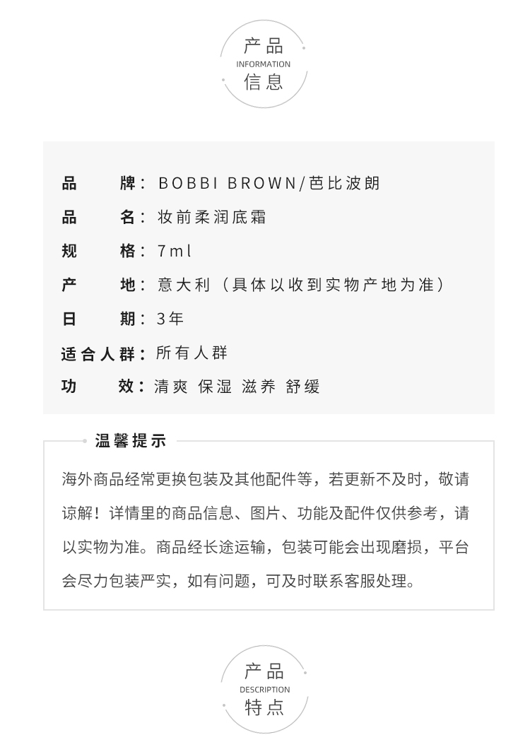 卡粉救星!Bobbi Brown芭比布朗橘子面霜维他命柔润妆前乳小样7ml/15ml