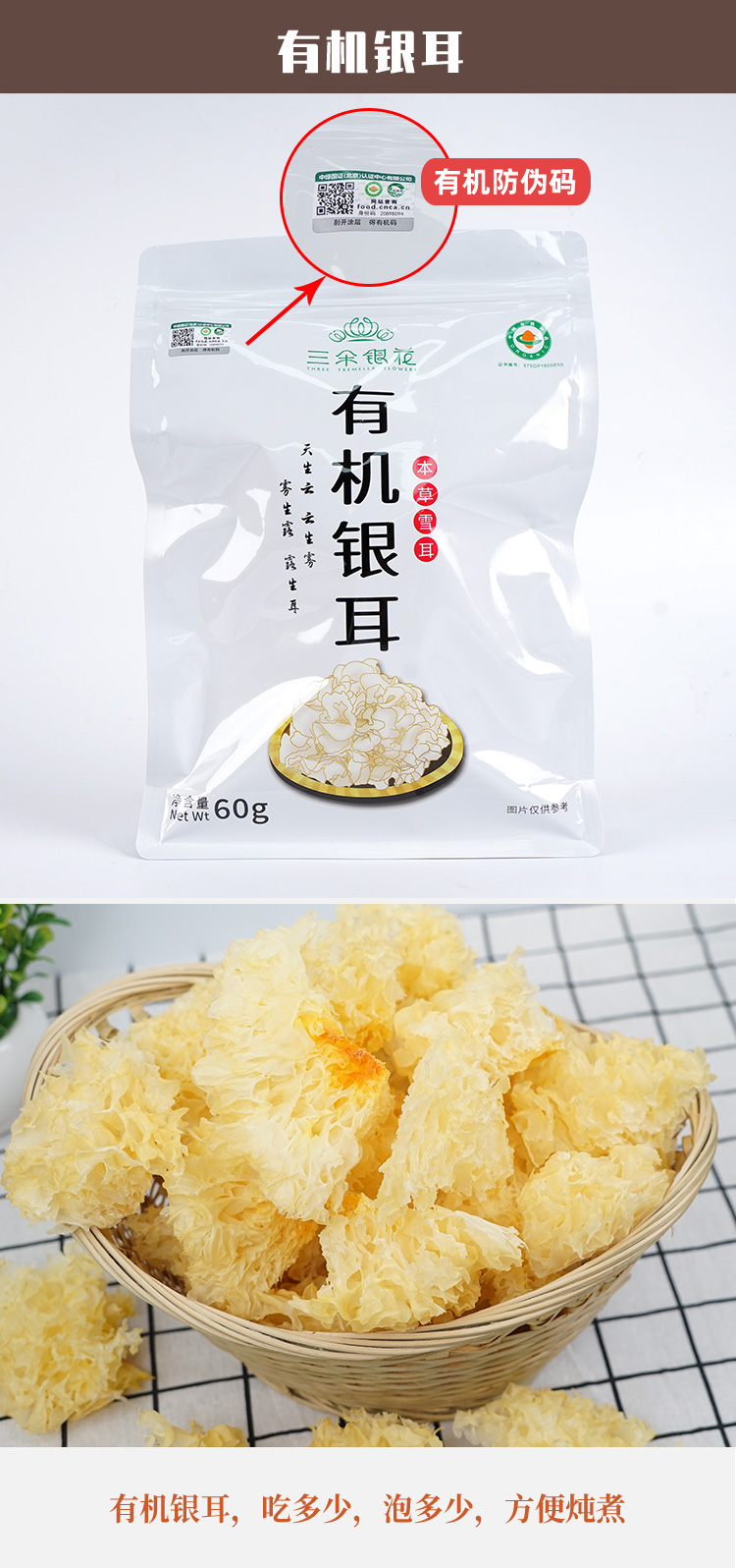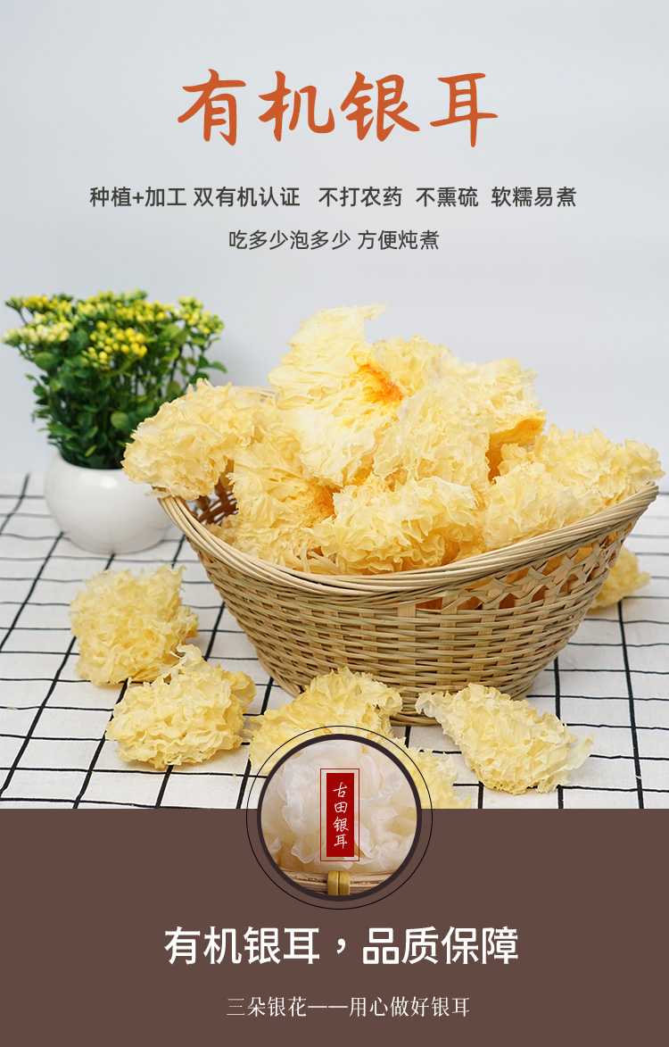 三朵银花 绿色干银耳150克古田银耳白木耳软糯胶质粘稠无熏硫干货