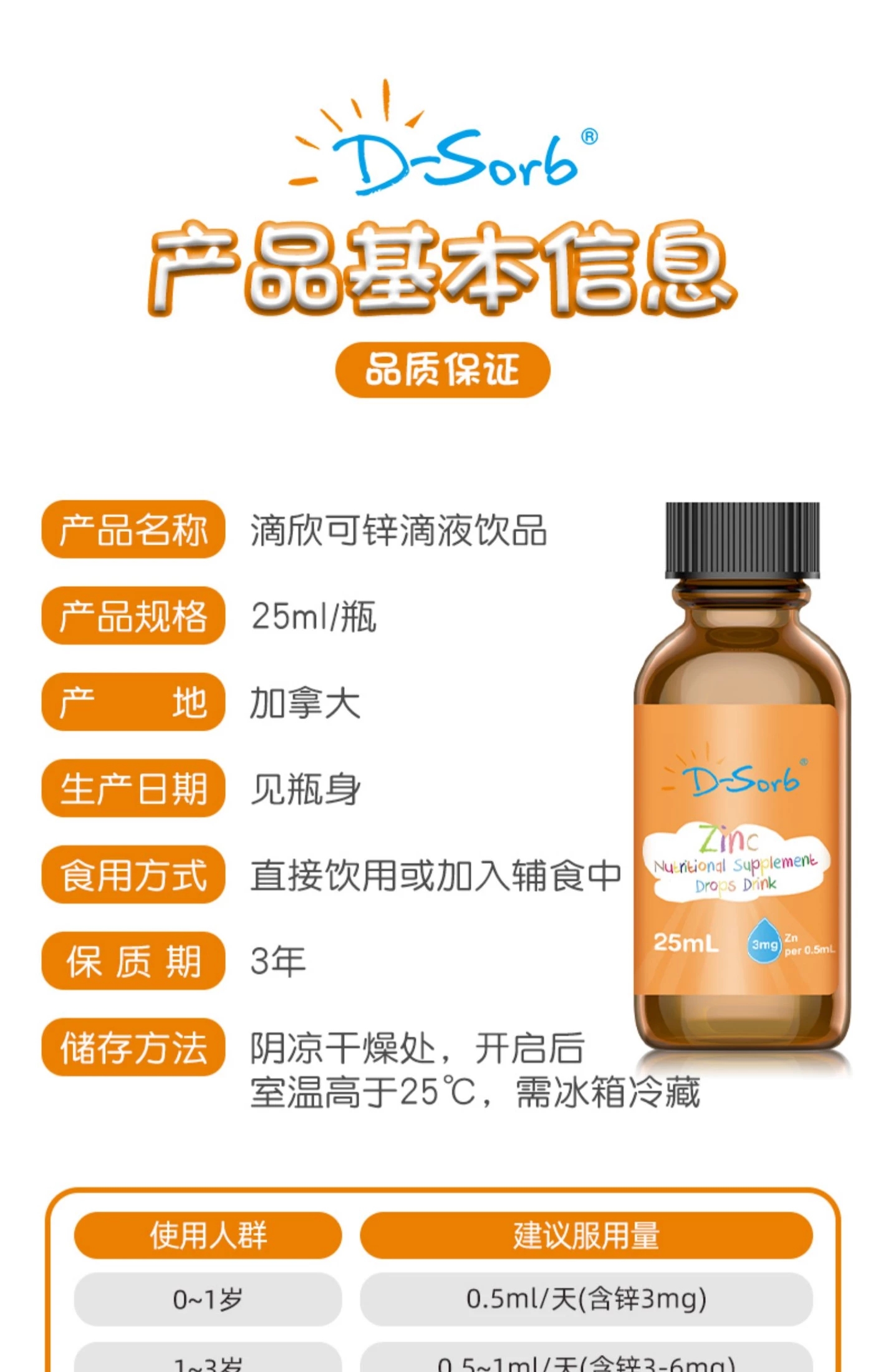 (可用积分抵扣 联系有惊喜)加拿大D-Sorb 滴适宝欣可锌婴幼儿宝宝锌