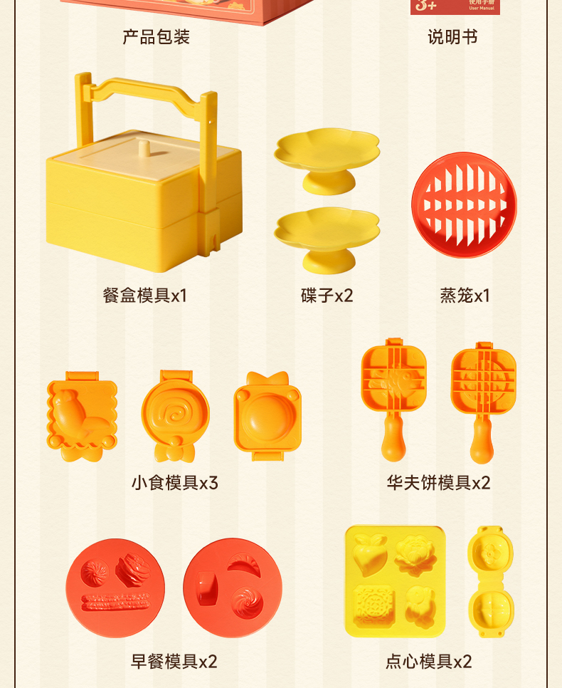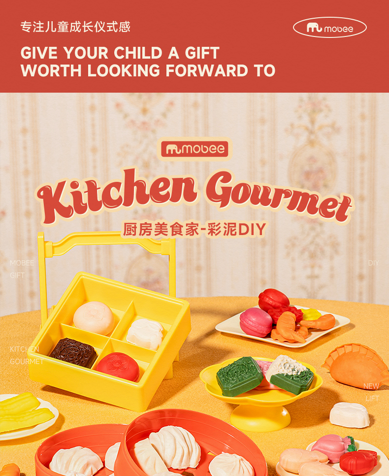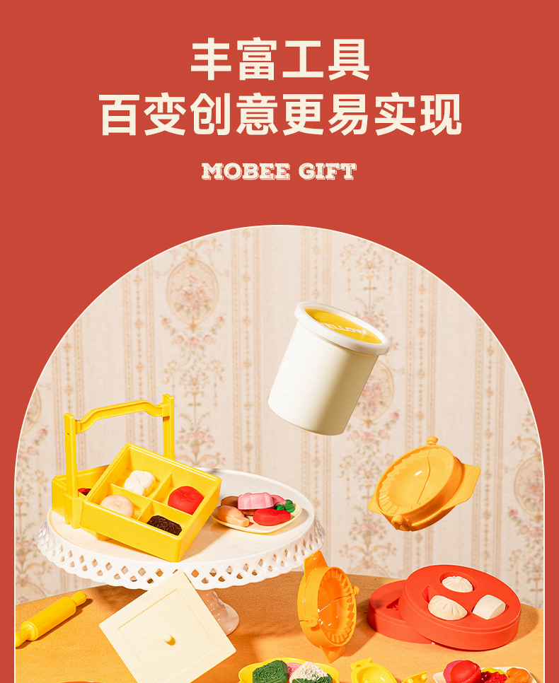 【DIY中式糕点 捏出盛宴】mobee儿童彩泥橡皮泥 趣味甜品屋奇趣彩泥可做冰淇淋/拉面 安全无毒粘土 幼儿园专用手工黏土模具套装