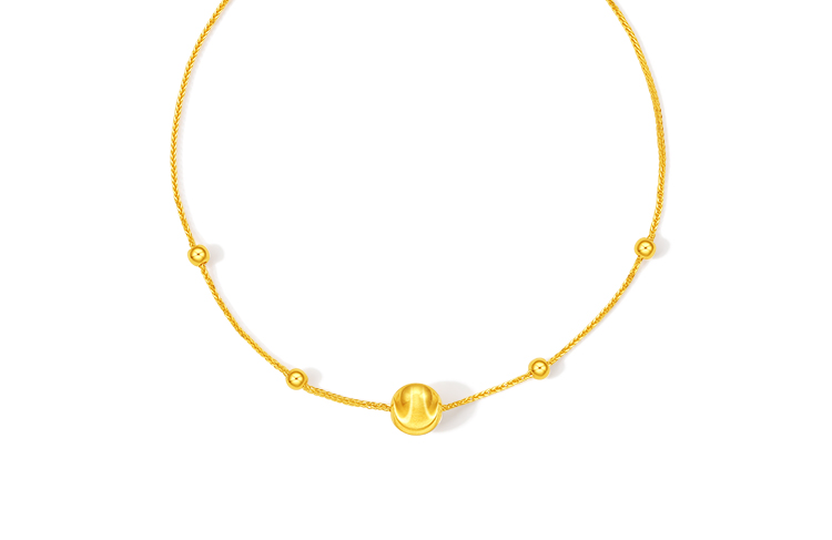 周六福5G黄金项链女款2代无极金系列时髦金计价足金颈饰串珠链坠