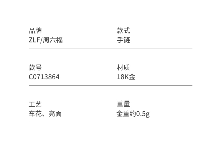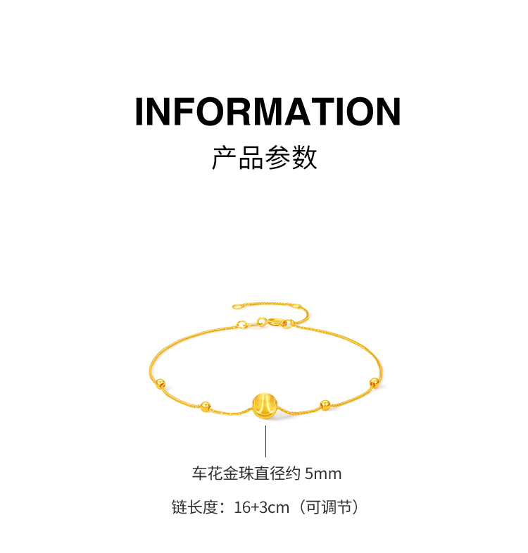 周六福黄18K金手链女金珠手饰多彩金Au750送女友节日礼物