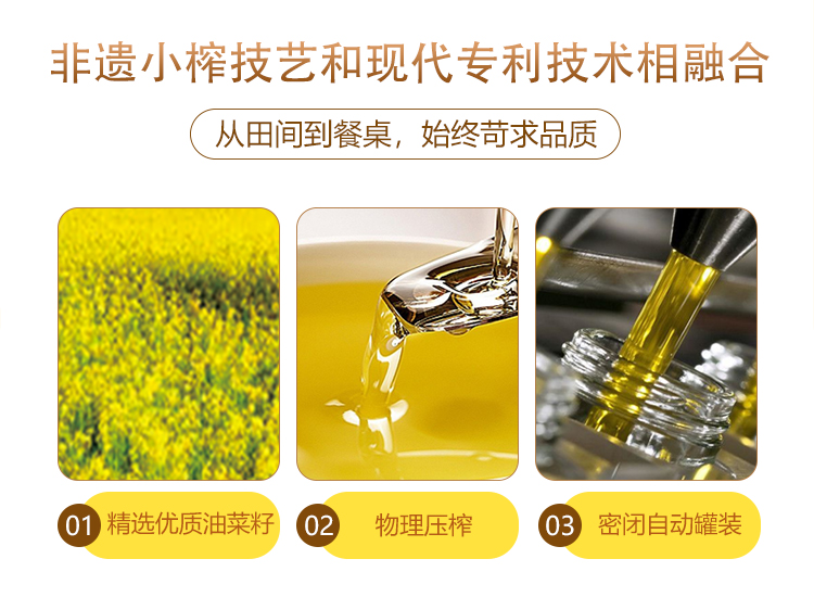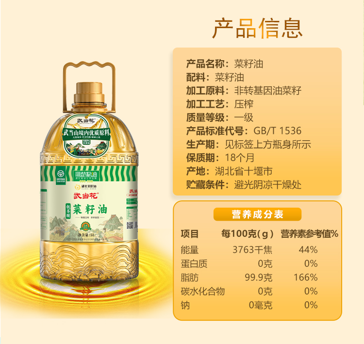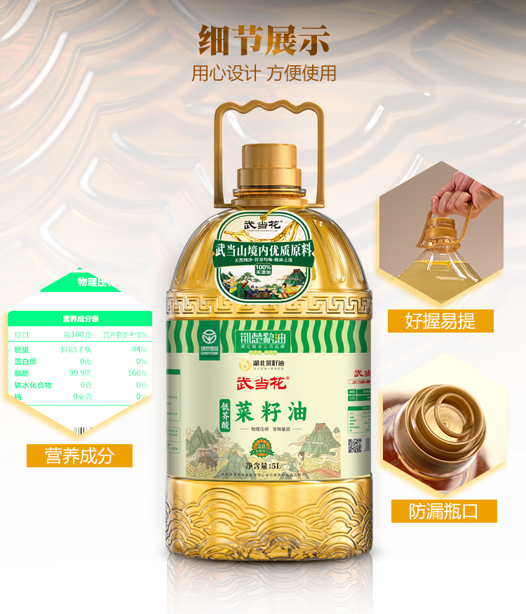 【严选】荆楚粮油湖北好粮油 秦巴山区物理压榨小榨植物油 武当花低芥酸菜籽油5L/桶(厂家直发)