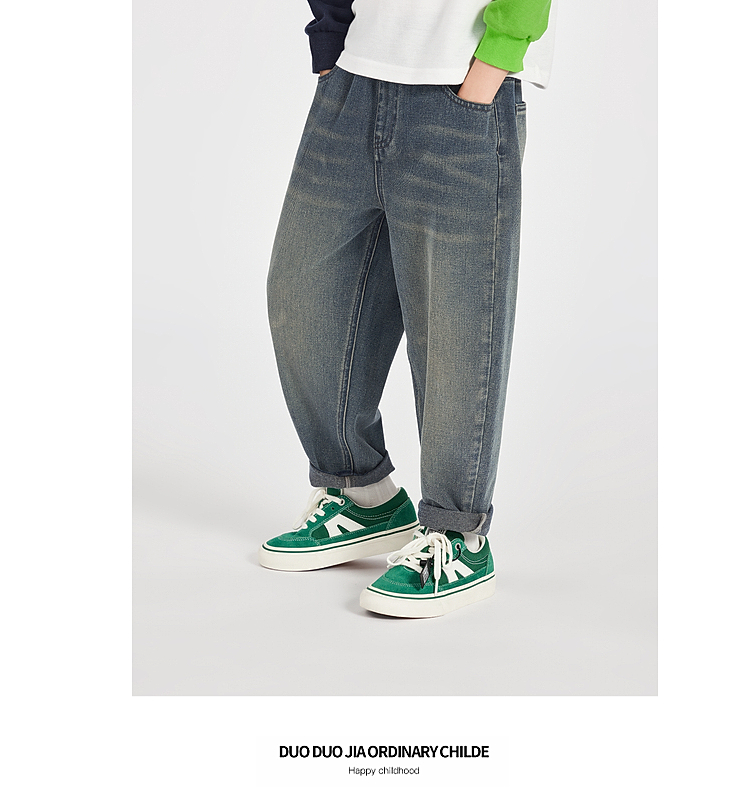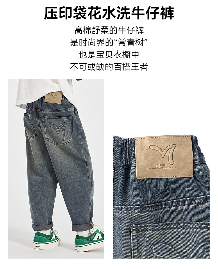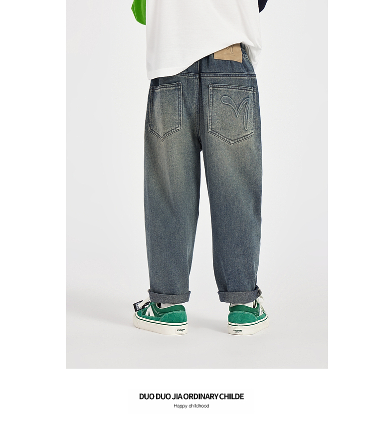 【团购价59.9】多多家男童牛仔裤春秋款2025新款儿童中大童洋气直筒休闲长裤子潮10375